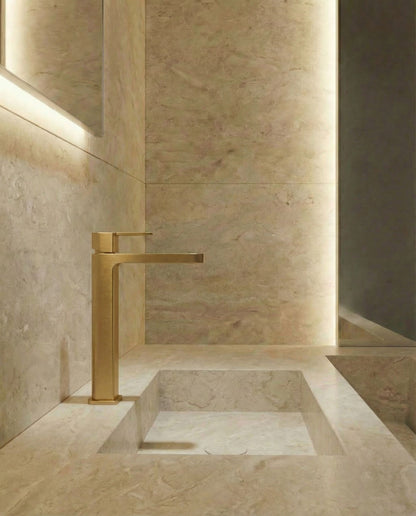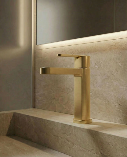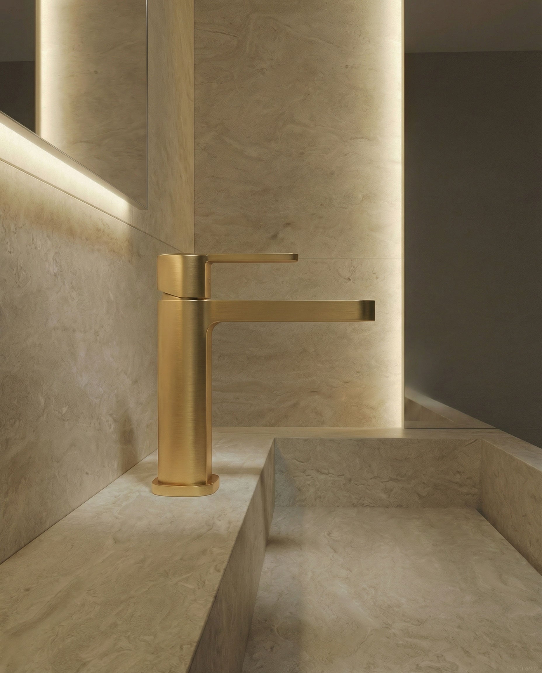 Einhebel-Waschtischarmatur mit geometrischem Design und klaren Linien. Der kantige Korpus strahlt Stärke aus, während der schlanke, aerodynamische Auslauf Leichtigkeit und Eleganz vermittelt. Das urbane Meisterwerk begeistert vor allem Liebhaber klarer Linien.