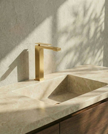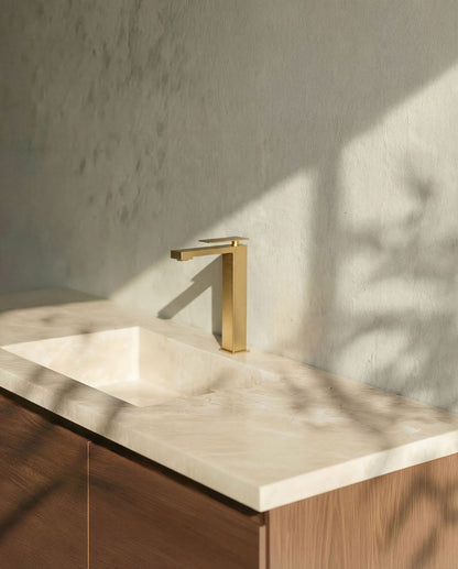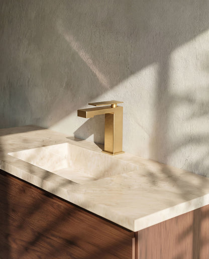 Einhebel-Waschtischarmatur im quadratischen Design mit klaren, markanten Linien. Die feine Bedienung verleiht der Armatur eine avantgardistische Ausstrahlung.