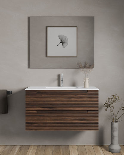 Waschtisch aus mattweißem Mineralwerkstoff oder Keramik in verschiedenen Designs.