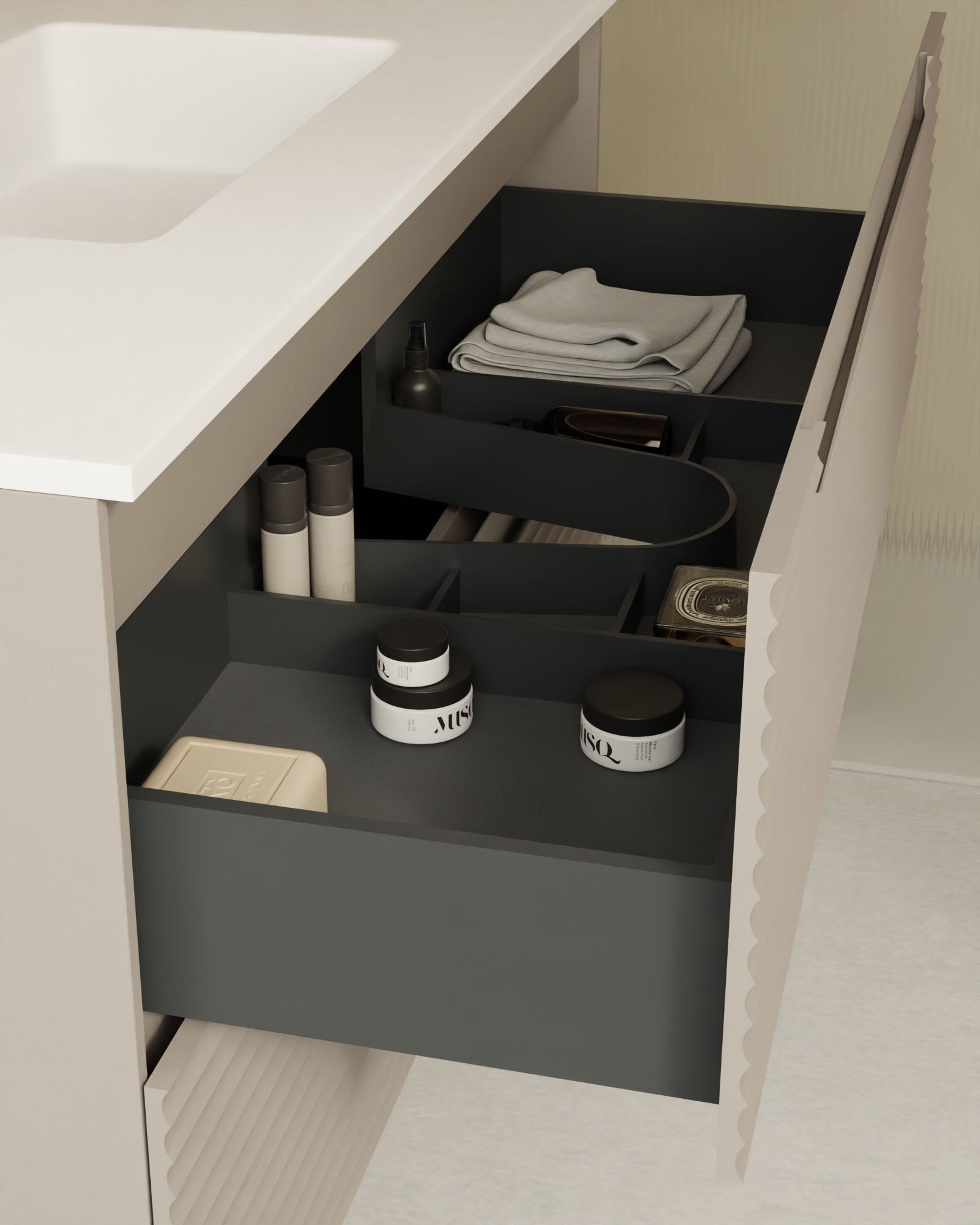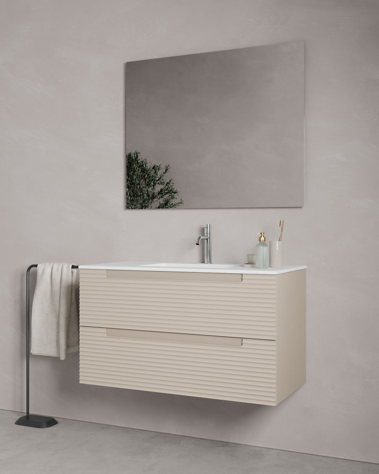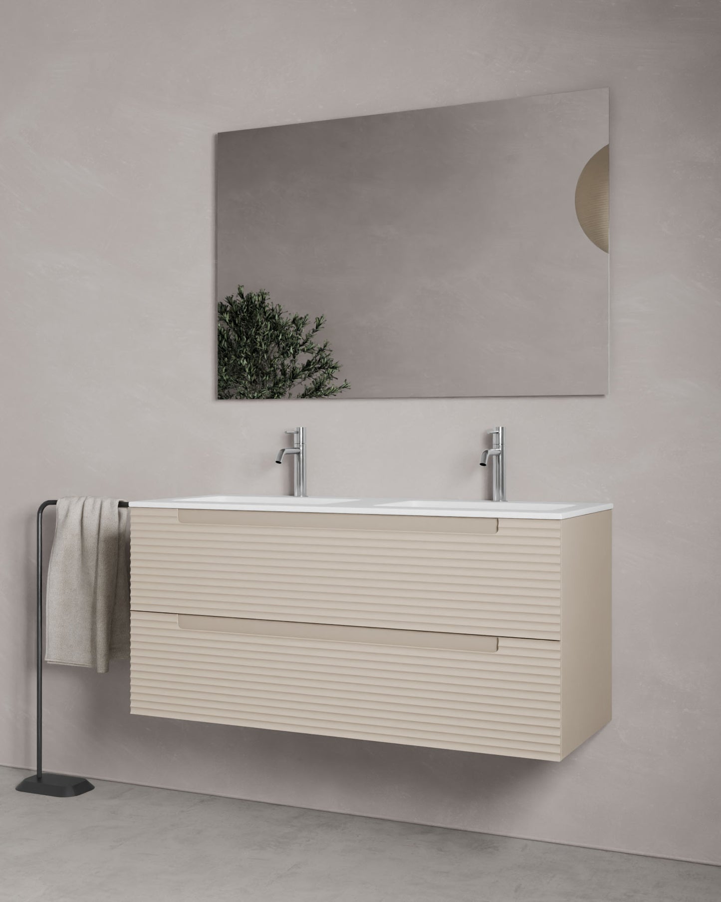 Kairo setzt durch sein markantes Design mit horizontalen, abgerundeten Rillen rhythmische Akzente, ohne den modernen Charakter zu verlieren. Die mittlere Griffleiste fügt sich harmonisch in das Design ein und garantiert einen bequemen Zugriff im urbanen Look.