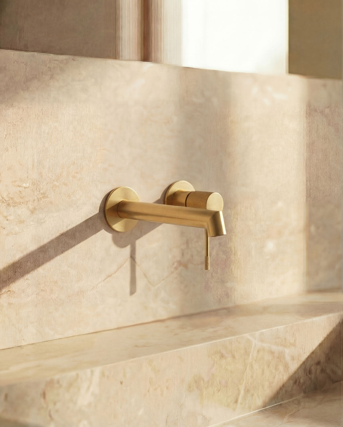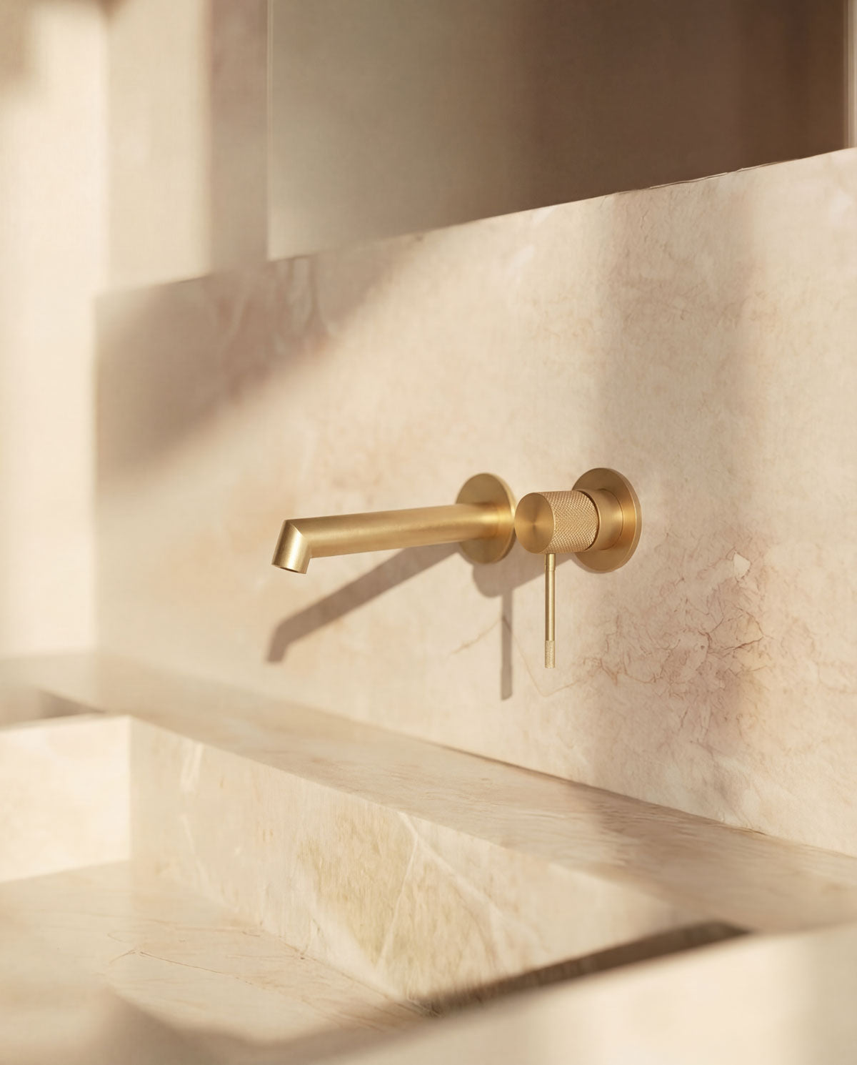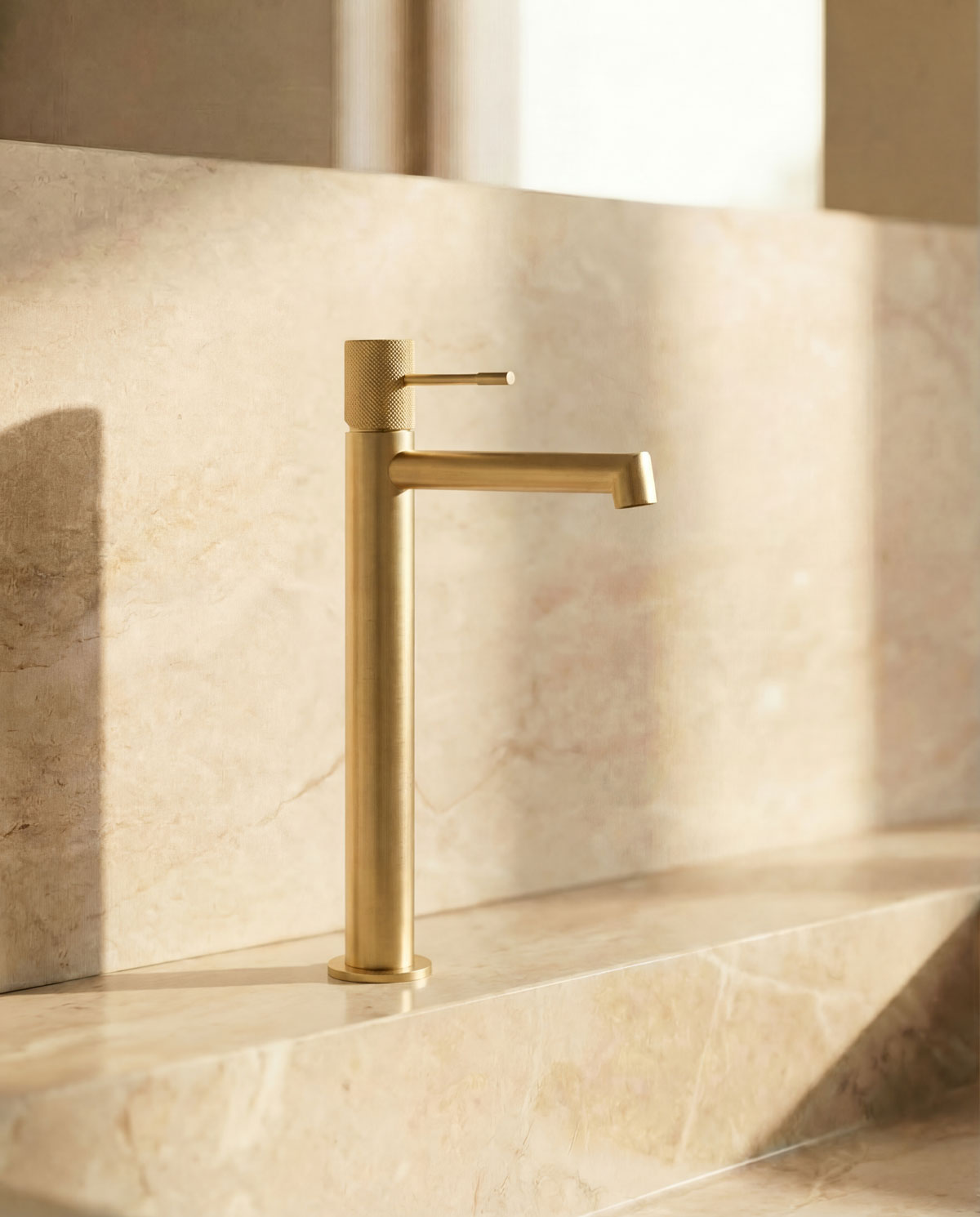 Die Serie Narel bringt italienisches Flair ins Bad: mit feinem Bedienhebel und markantem, gerilltem Auslauf.