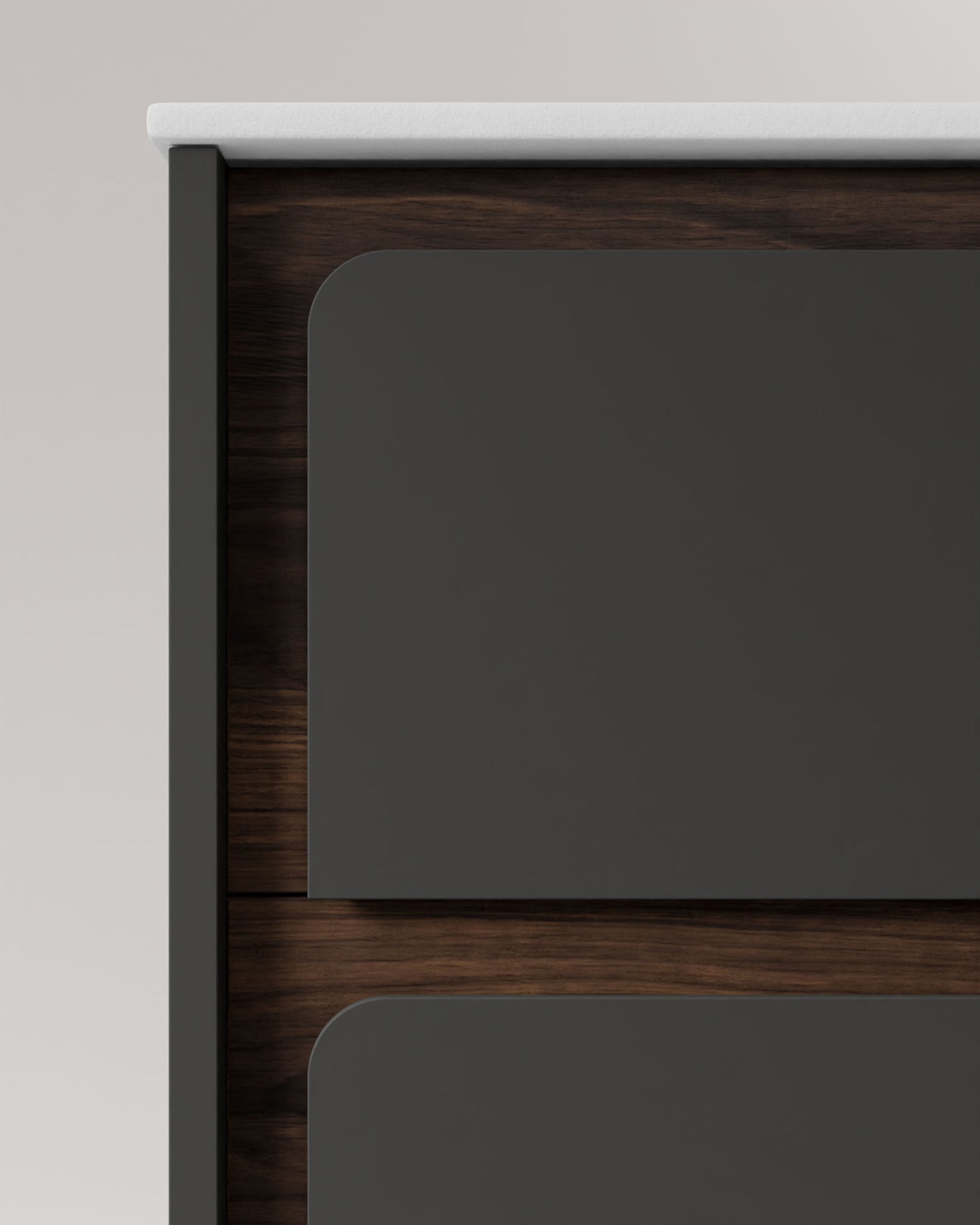 • Möbelkorpus aus lackierten Oberflächen und melaminbeschichteten Holzwerkstoffen