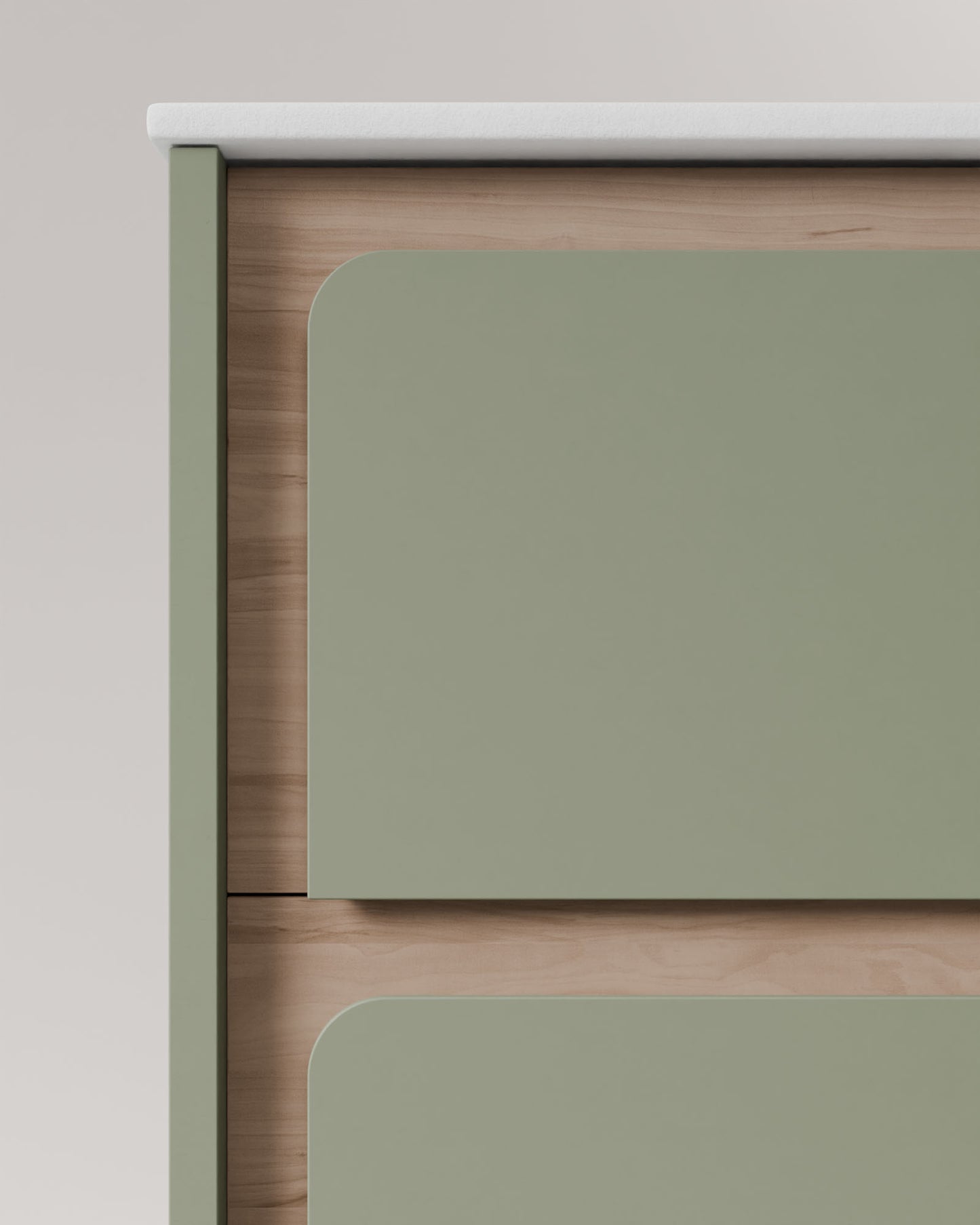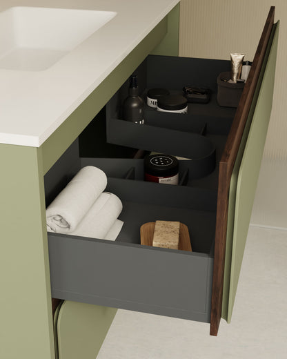 Dank der hohen Konfigurierbarkeit lässt sich die Farbe des Möbels mit einem Frontrahmen in Lack oder Nu