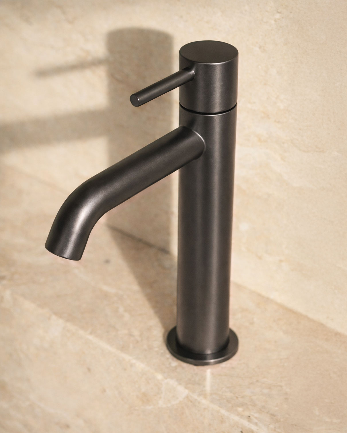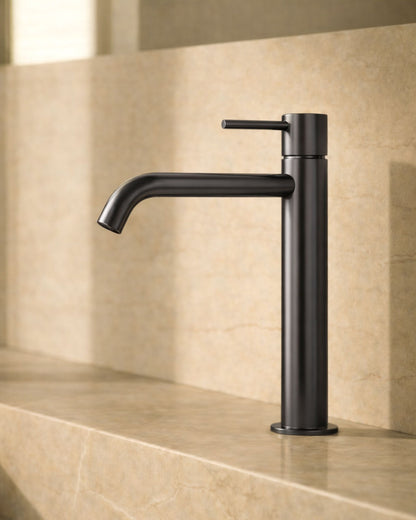 Single-lever basin mixer with soft, rounded lines. The cylindrical body and downward-tilted spout create a flowing, nature-inspired aesthetic, while the slim lever adds visual lightness. The clear, Italian-inspired silhouette is perfectly proportioned – no wonder it is so widely used.