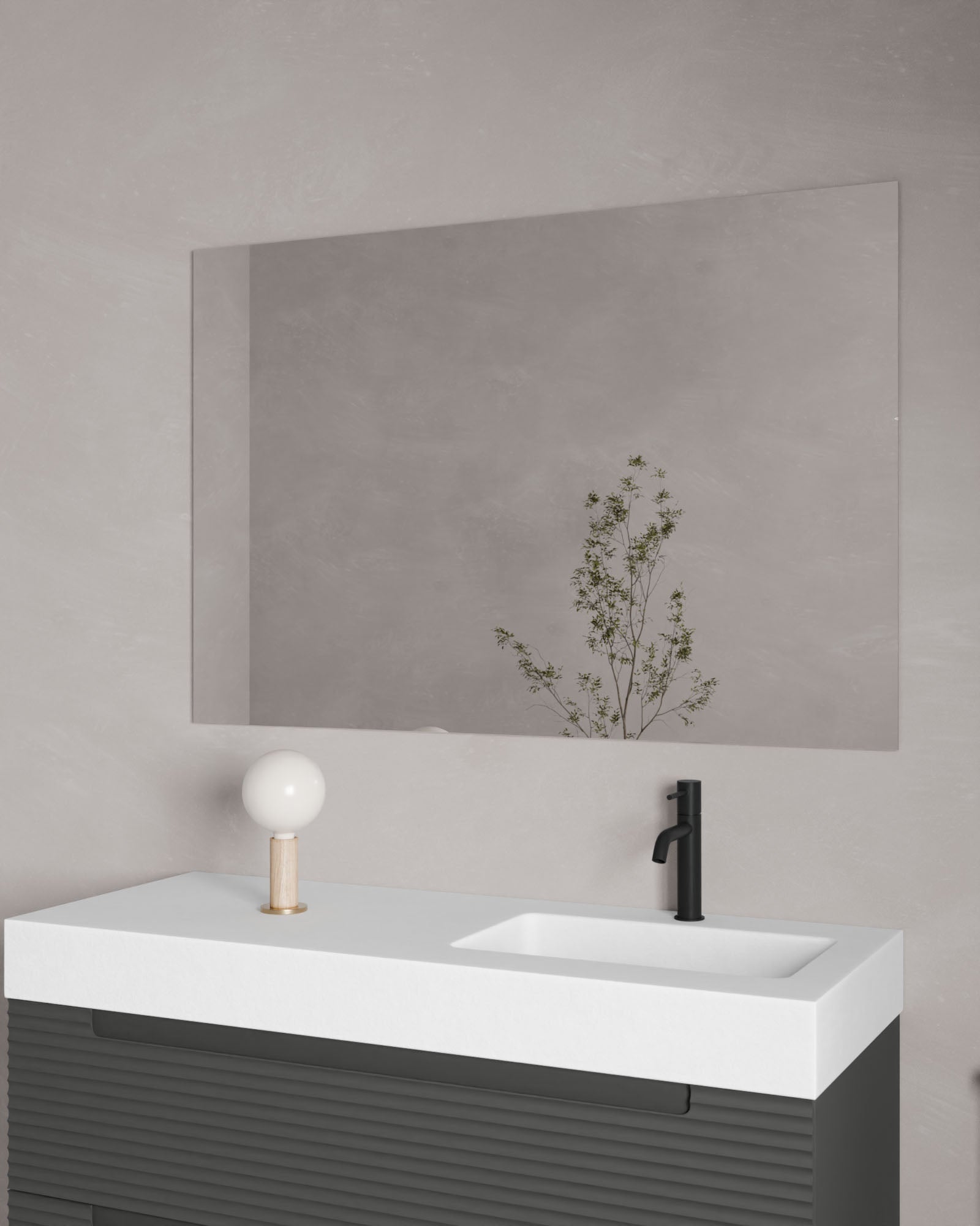 Rechteckiger, rahmenloser Spiegel ohne Beleuchtung – klar, reduziert und zeitlos. Bandi bringt Ruhe und Ordnung ins Bad und fügt sich mühelos in moderne wie klassische Einrichtungen ein. Ideal für alle, die puristisches Design ohne Ablenkung schätzen.