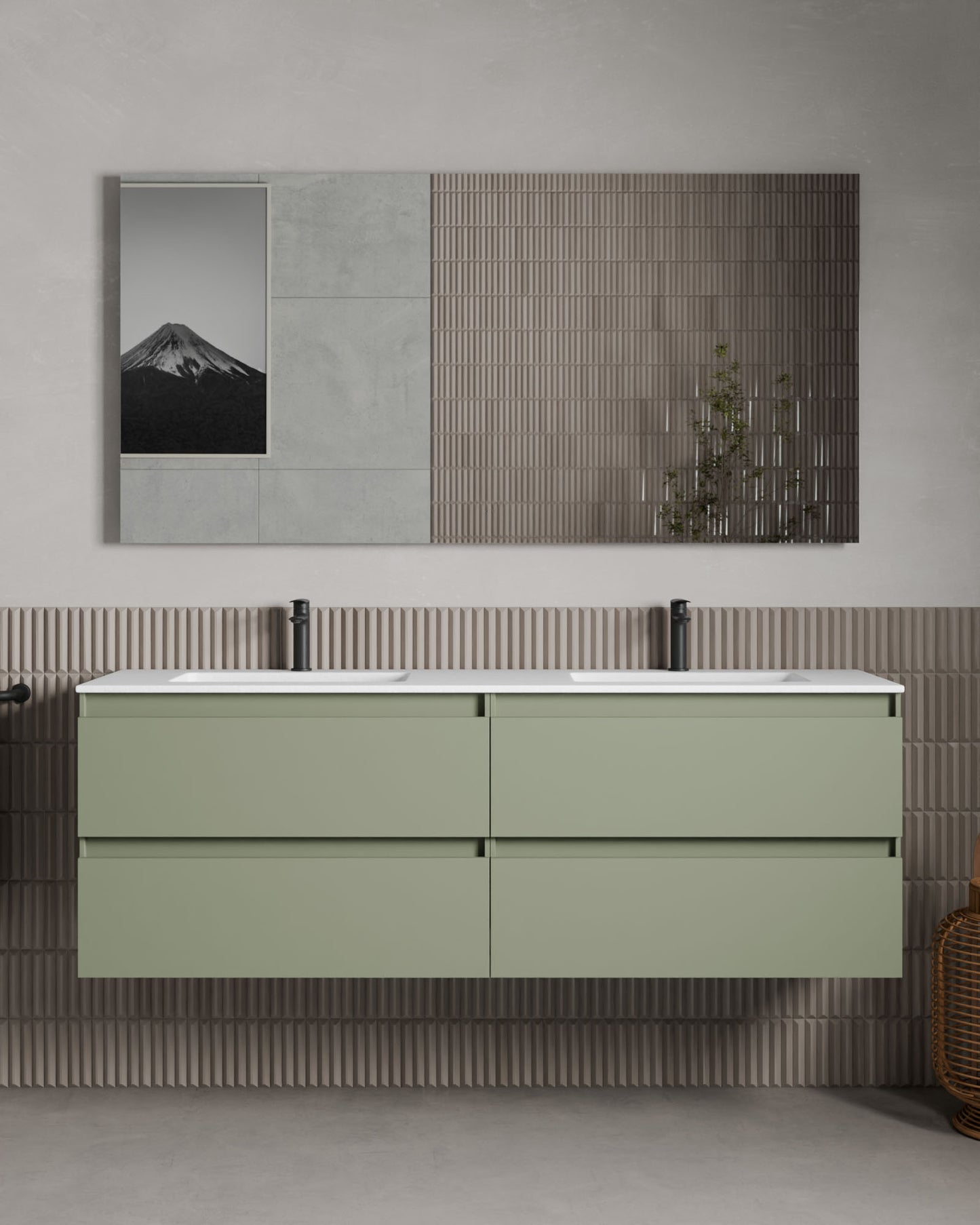 El espejo rectangular con iluminación suave en el borde crea una atmósfera armoniosa y una visión nítida en cualquier baño. Su forma alargada es perfecta para tocadores más amplios y proporciona equilibrio visual y una relajante sensación de calma.