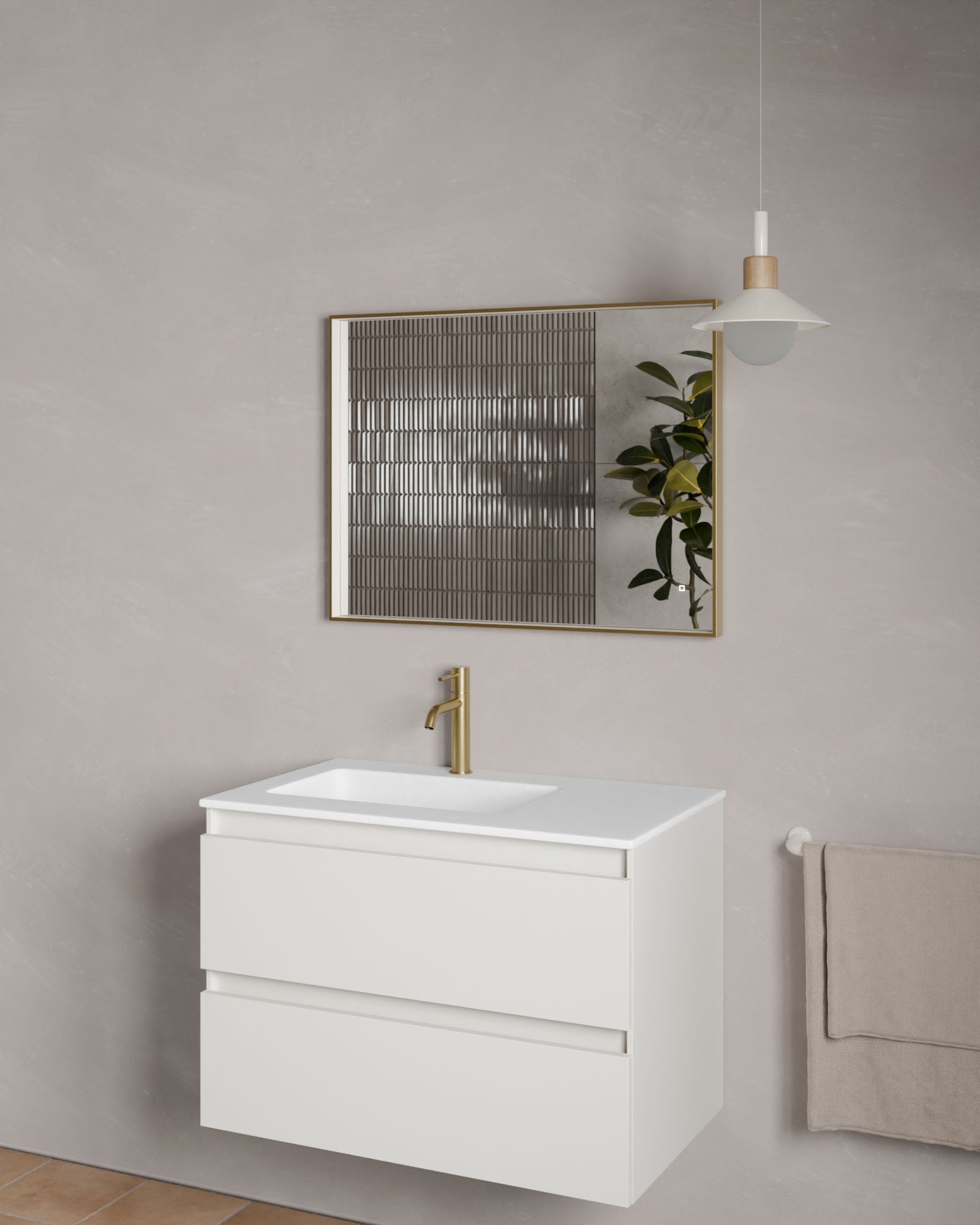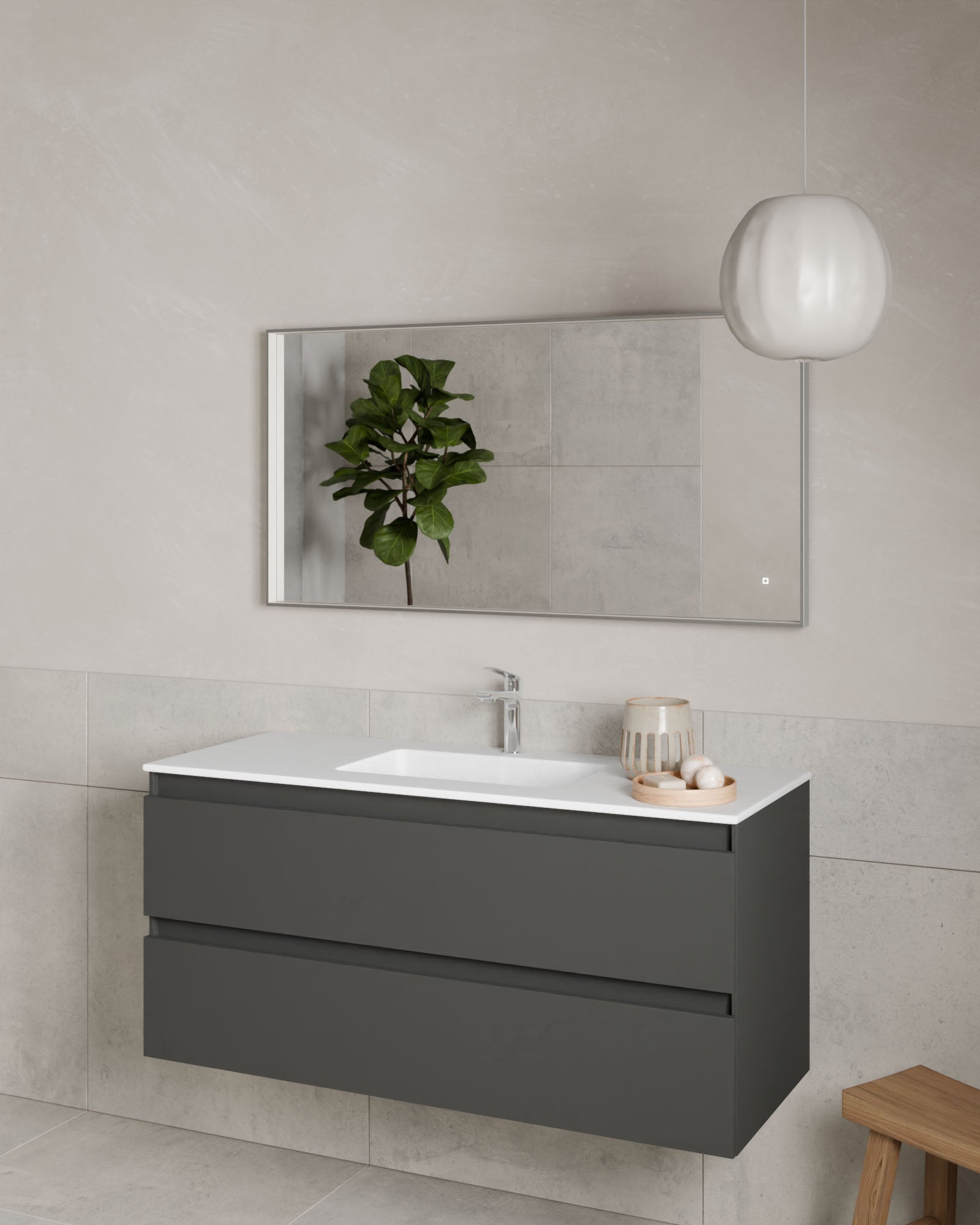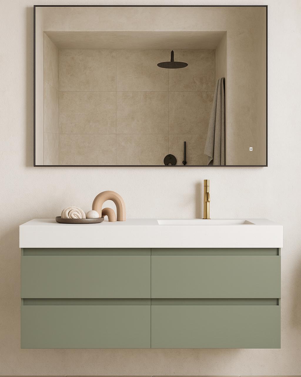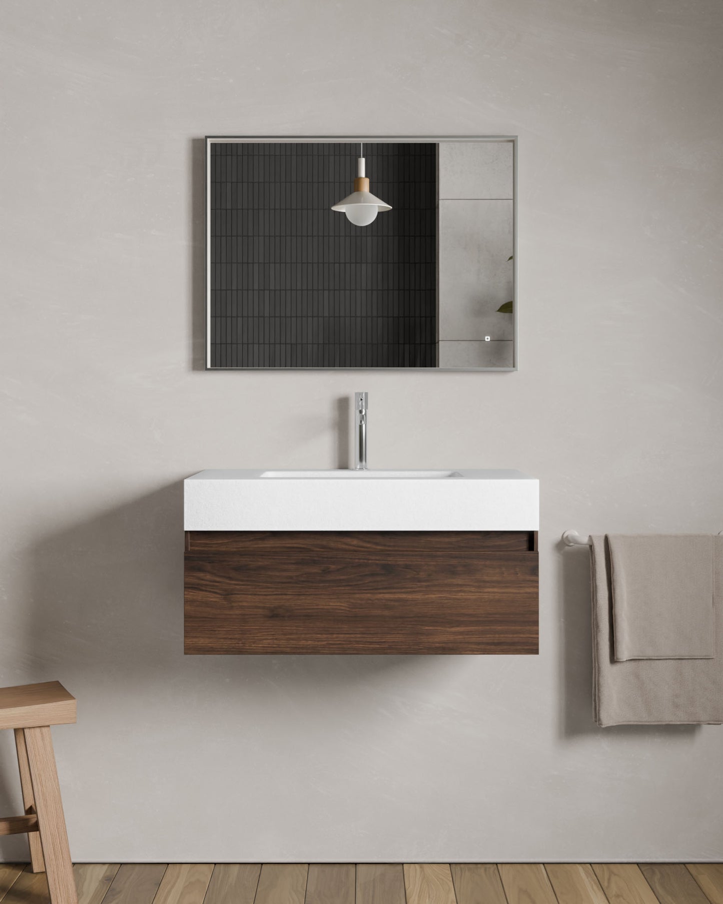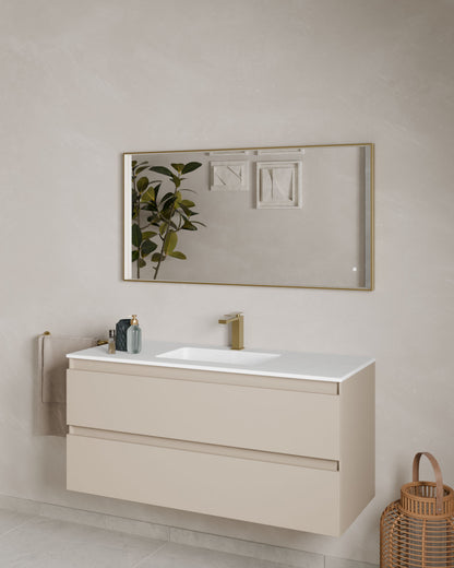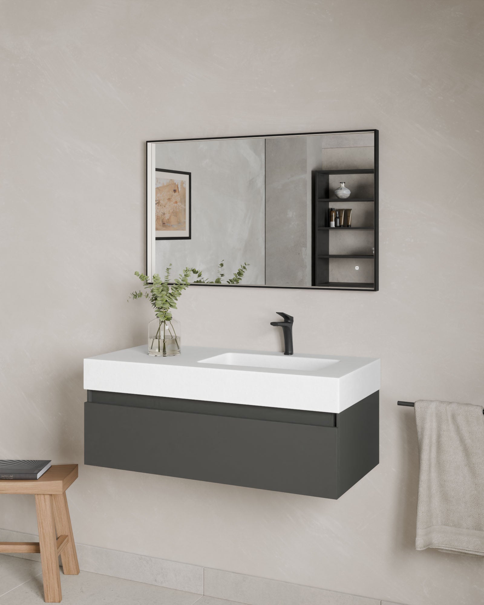 Rechteckiger Spiegel mit breitem Rahmen in Silber, Gold oder Schwarz, der minimalistisches Design mit modernster Technik kombiniert, um dein Bad zum Strahlen zu bringen.