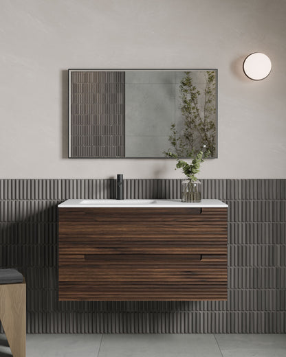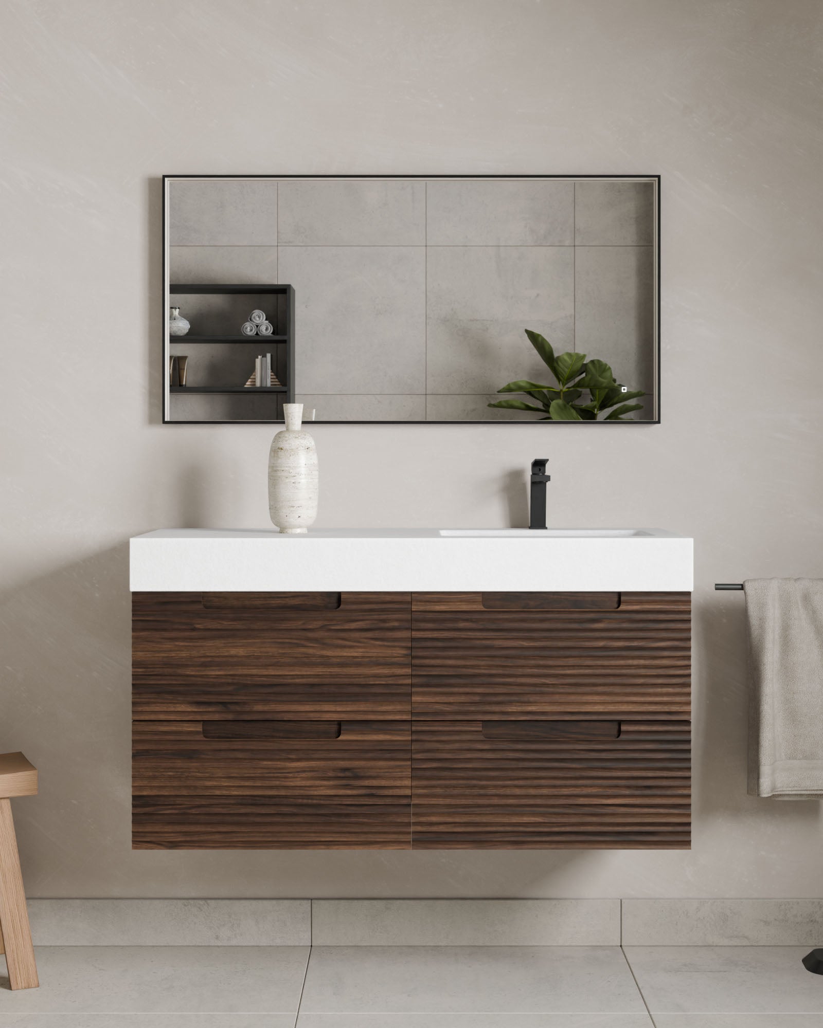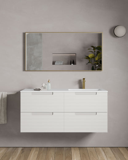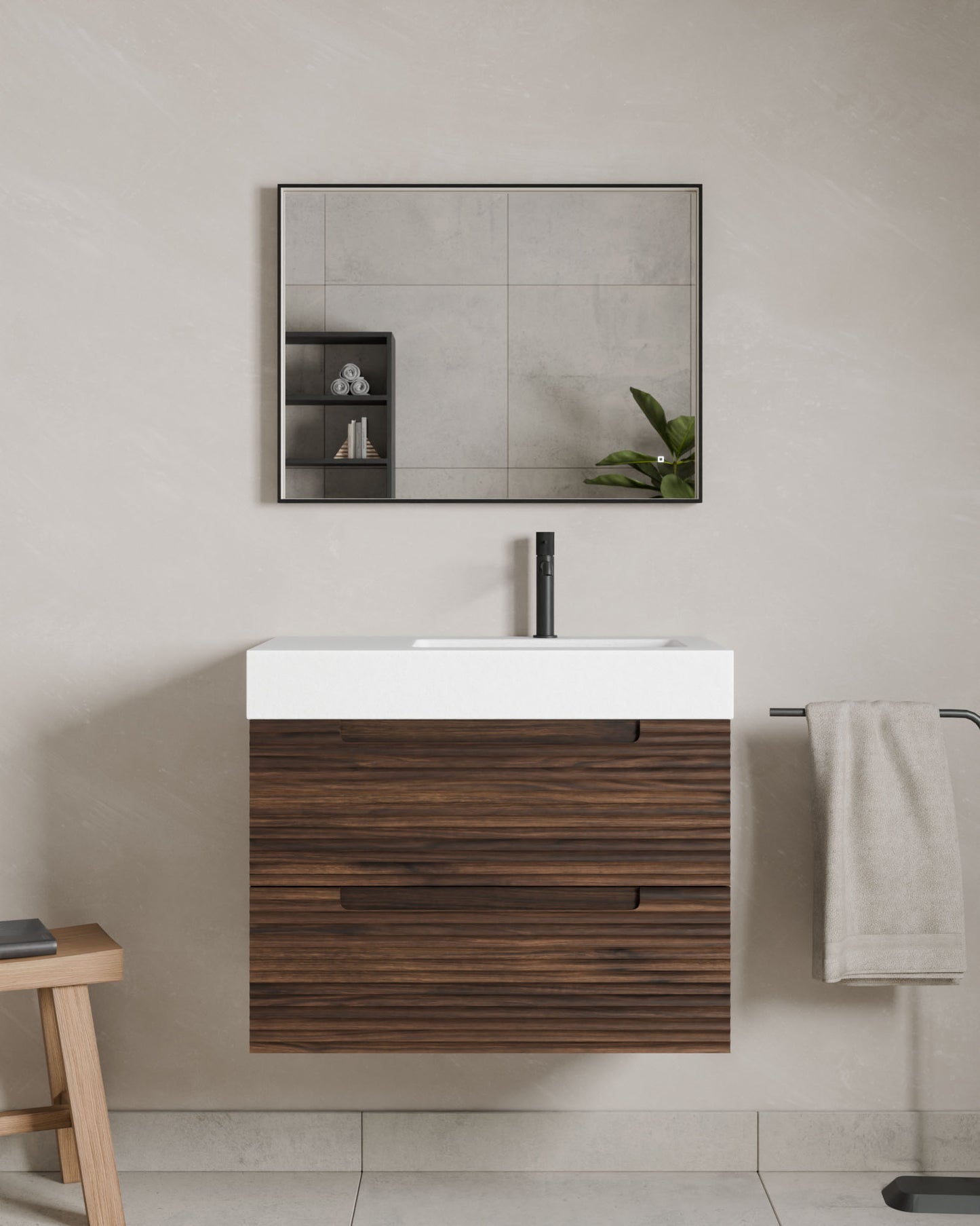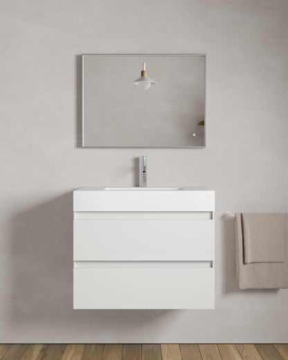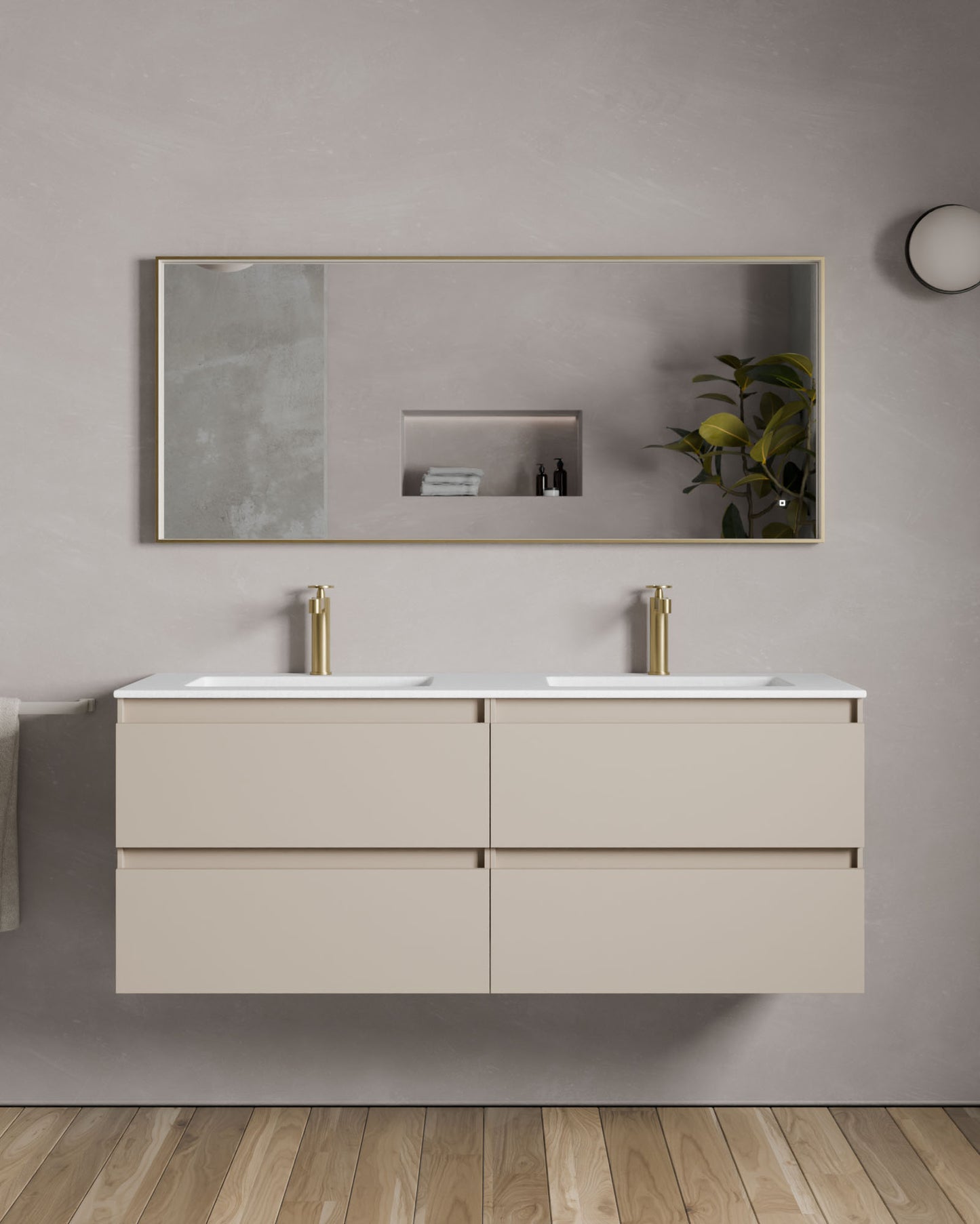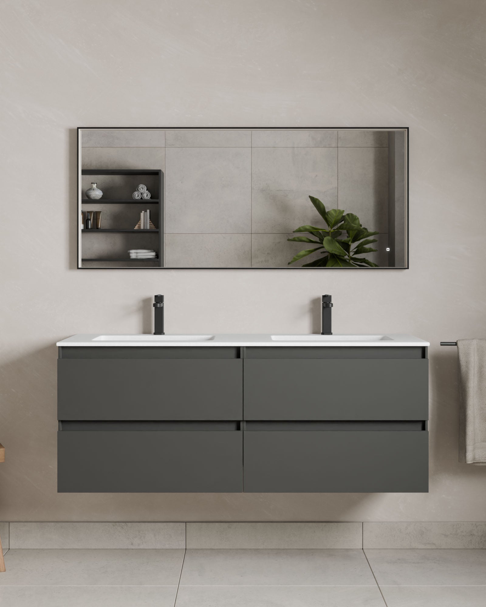 Rechteckiger Spiegel mit breitem Rahmen in Silber, Gold oder Schwarz, der minimalistisches Design mit modernster Technik kombiniert, um dein Bad zum Strahlen zu bringen.