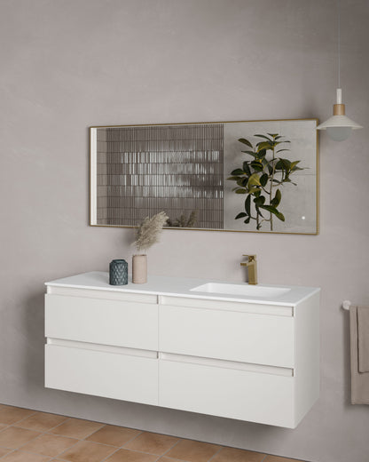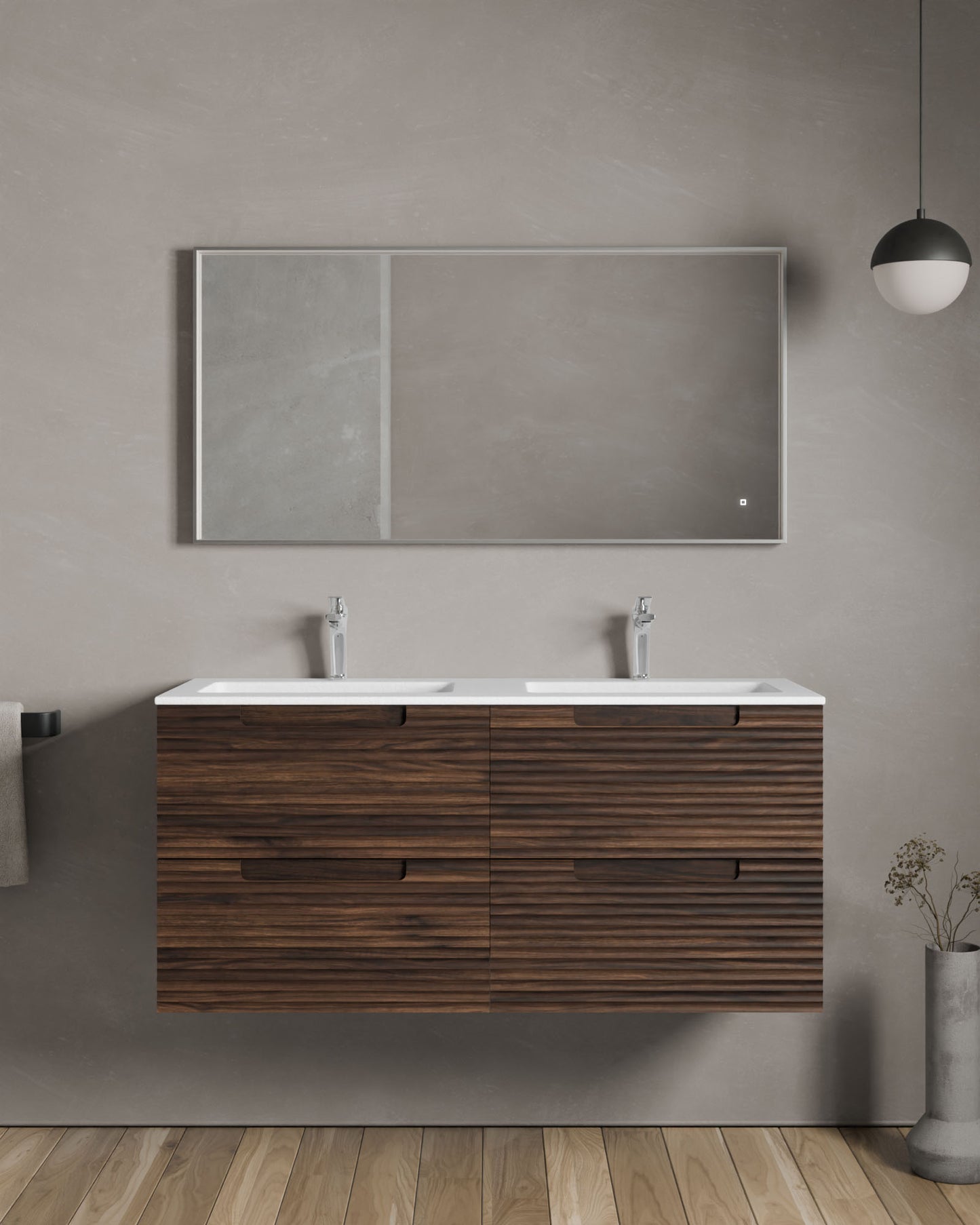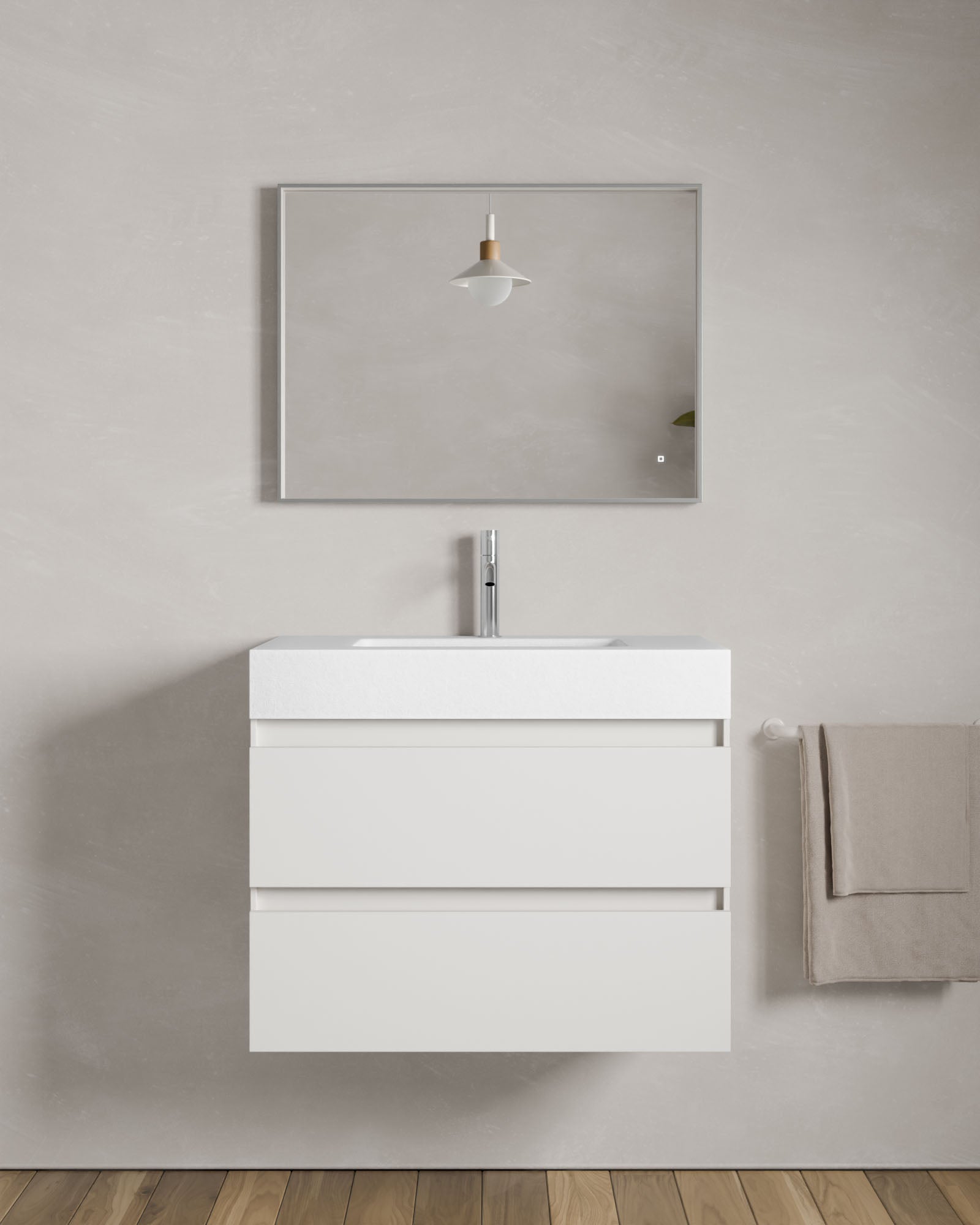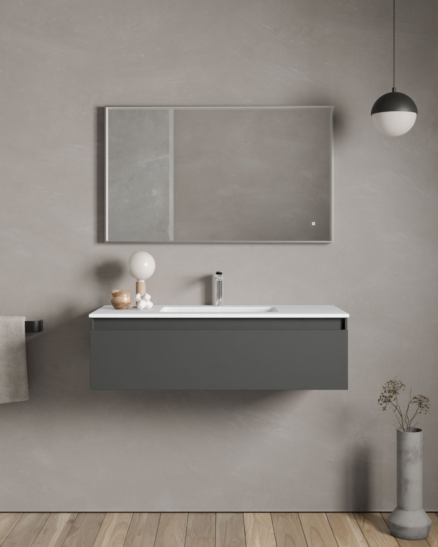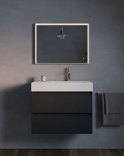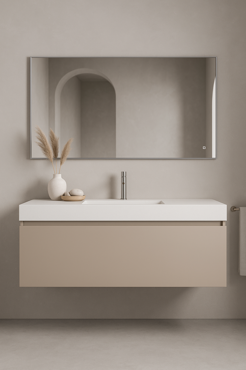 Der breite Rahmen setzt markante, elegante Akzente, während die umlaufende Beleuchtung eine warme und stilvolle Atmosphäre schafft. Doch das wahre Highlight sind seine Funktionen: mit Beleuchtung, Dimmer, Lichtfarbe und Spiegelheizung – alles bequem über eine Touch-Steuerung bedienbar. Ein echtes All-in-One für alle, die Design und Funktionalität in einem Spiegel suchen.