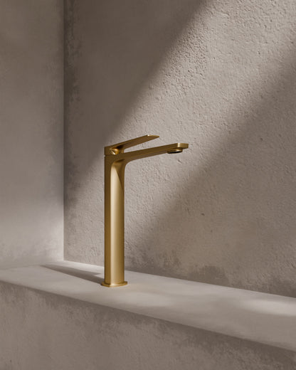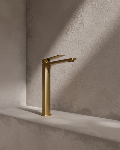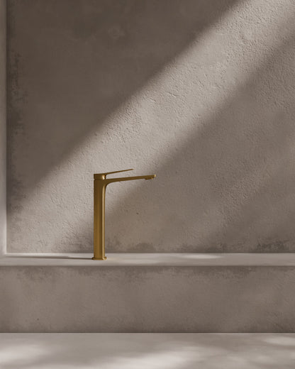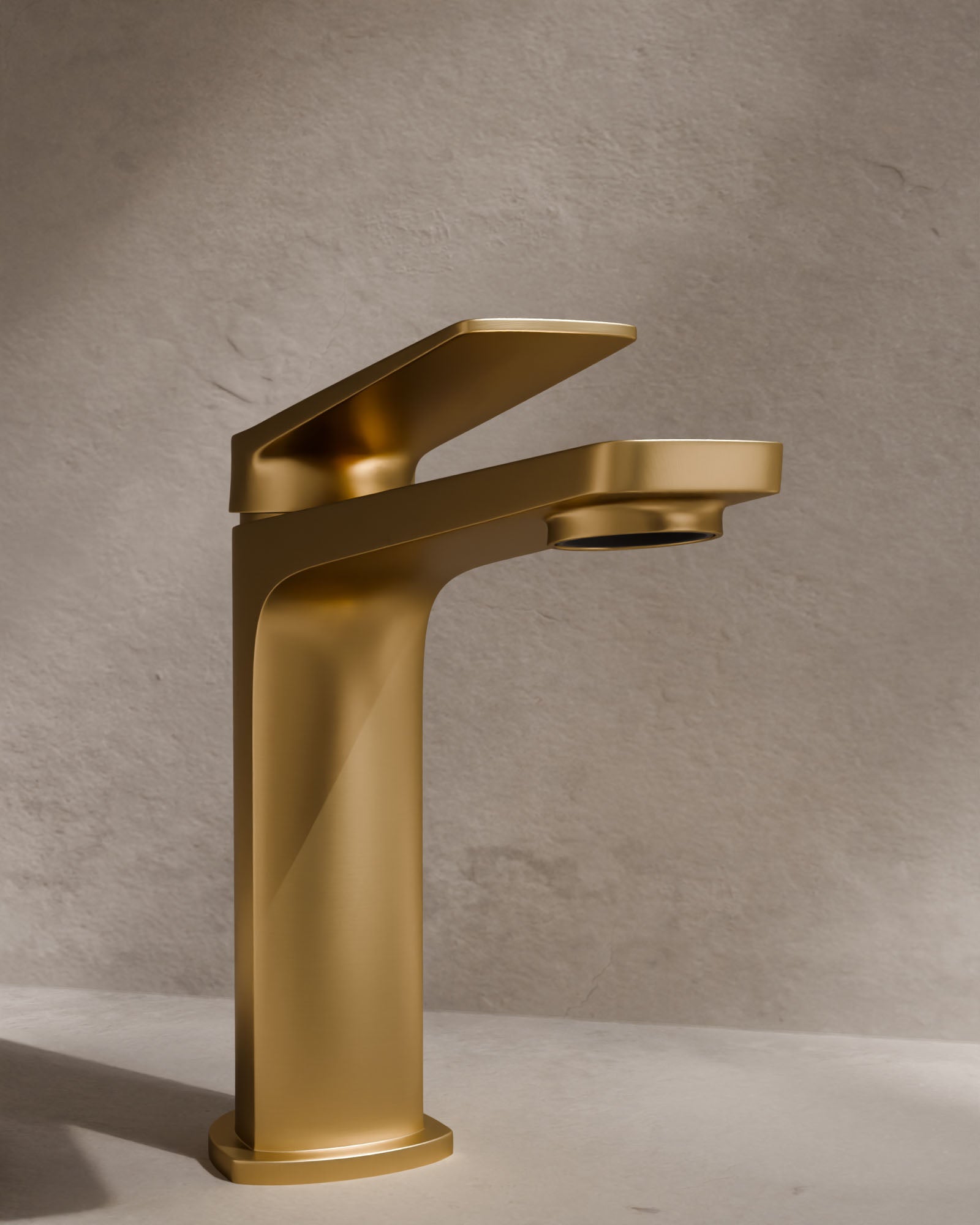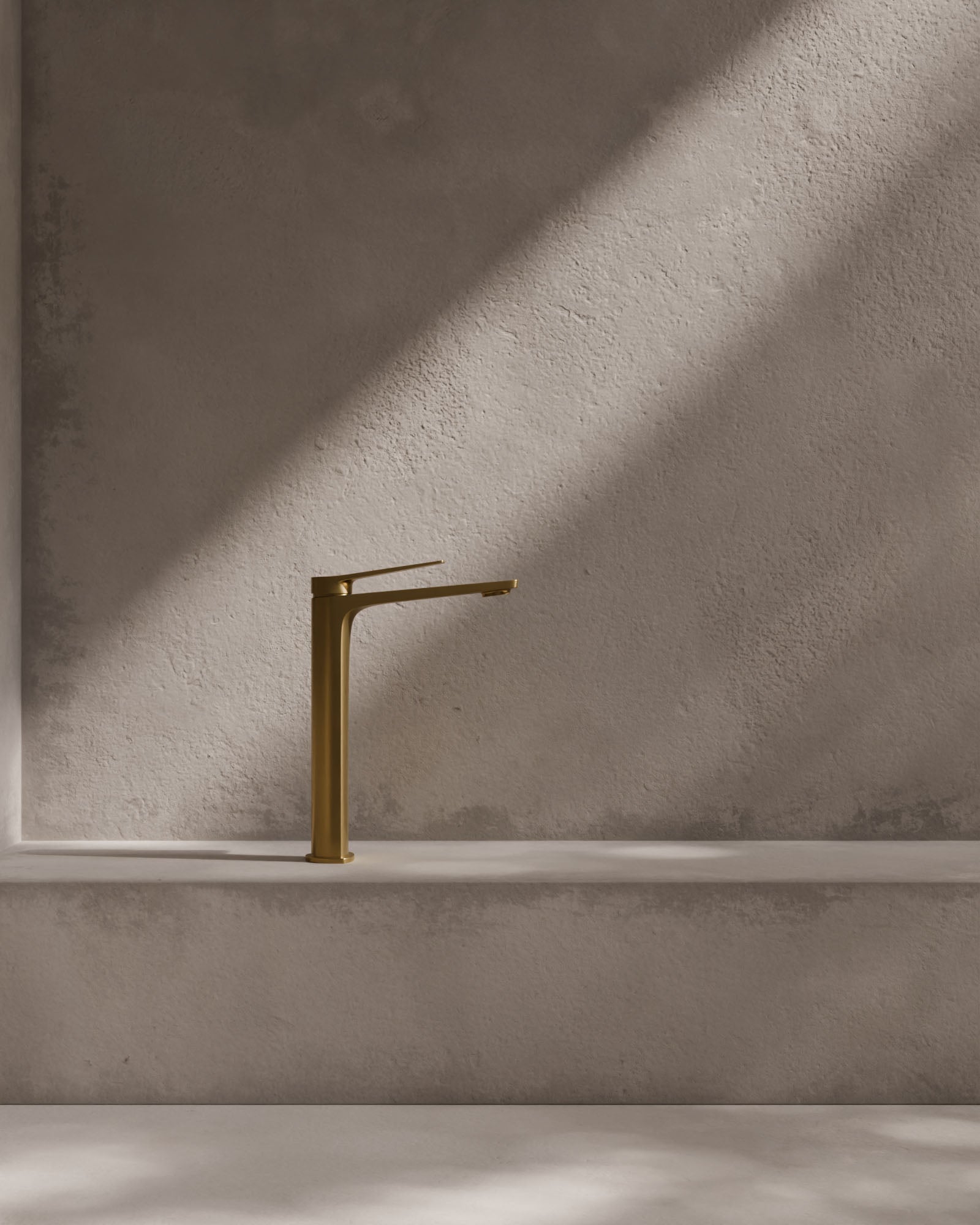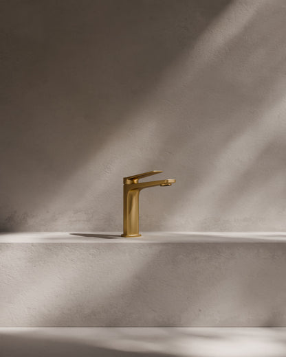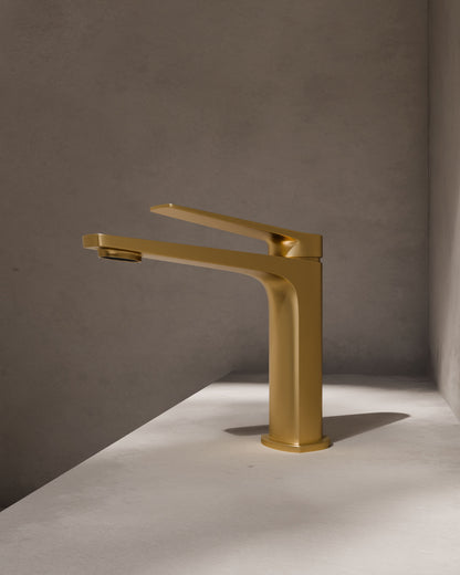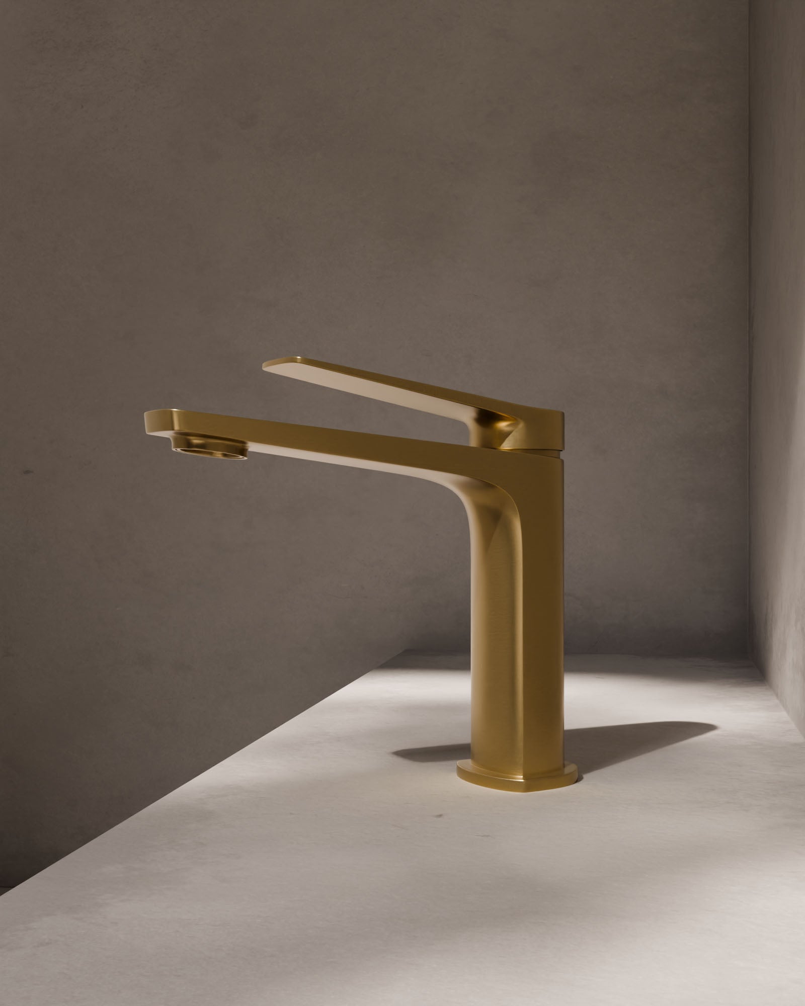 Einhebel-Waschtischarmatur im mediterranen Design mit runder Form und geradem Auslauf. Minimalistisch und vielseitig.