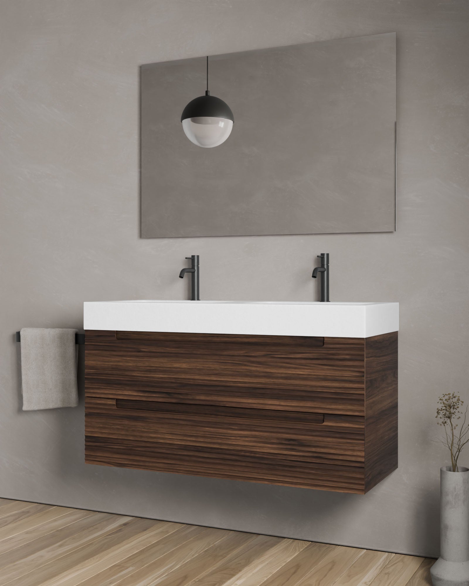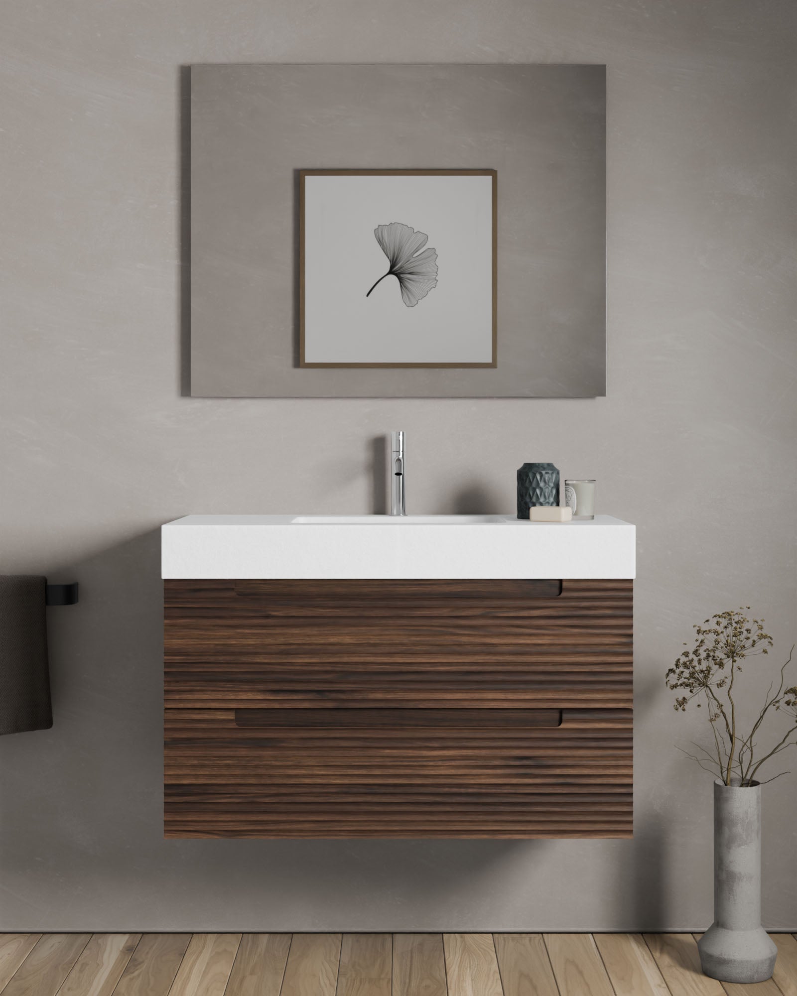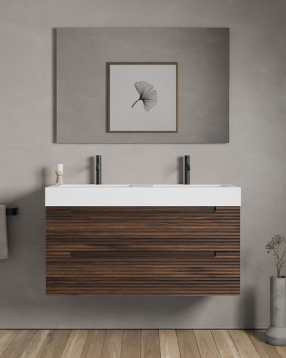Waschtisch aus mattweißem Mineralwerkstoff oder Keramik in verschiedenen Designs.