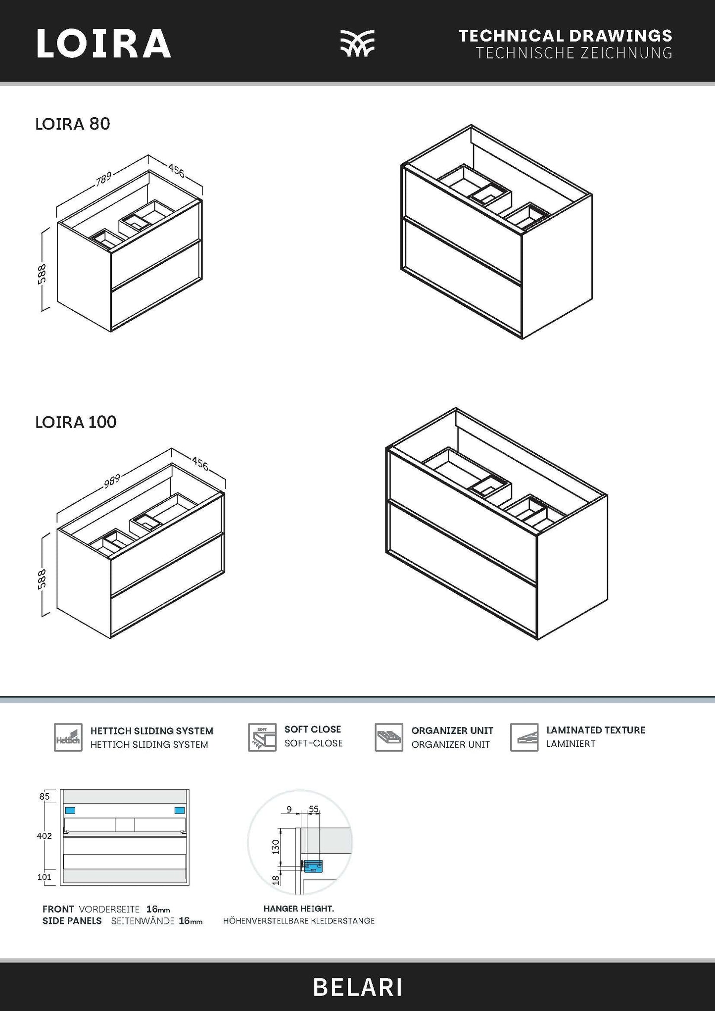 Loira ist die perfekte Balance aus zeitloser Eleganz und trendigem Design. Der umlaufende Rahmen schenkt dem Objekt eine dezente Struktur, während die Griffleiste einen bequemen Zugriff ohne optische Unruhe garantiert. Das anthrazitfarbene Interieur mit dem integrierten Organisationssystem in der oberen Schublade, die Soft-Close-Führungen von Hettich und die verstellbaren Schubladen komplettieren das Design.