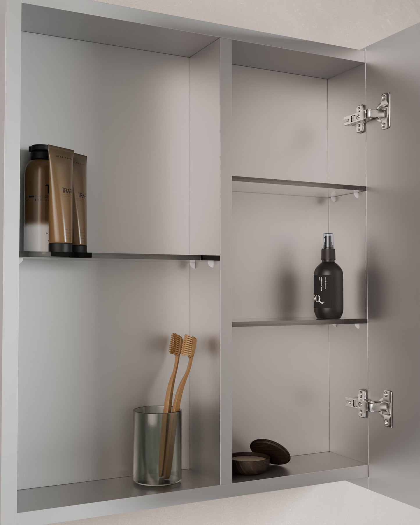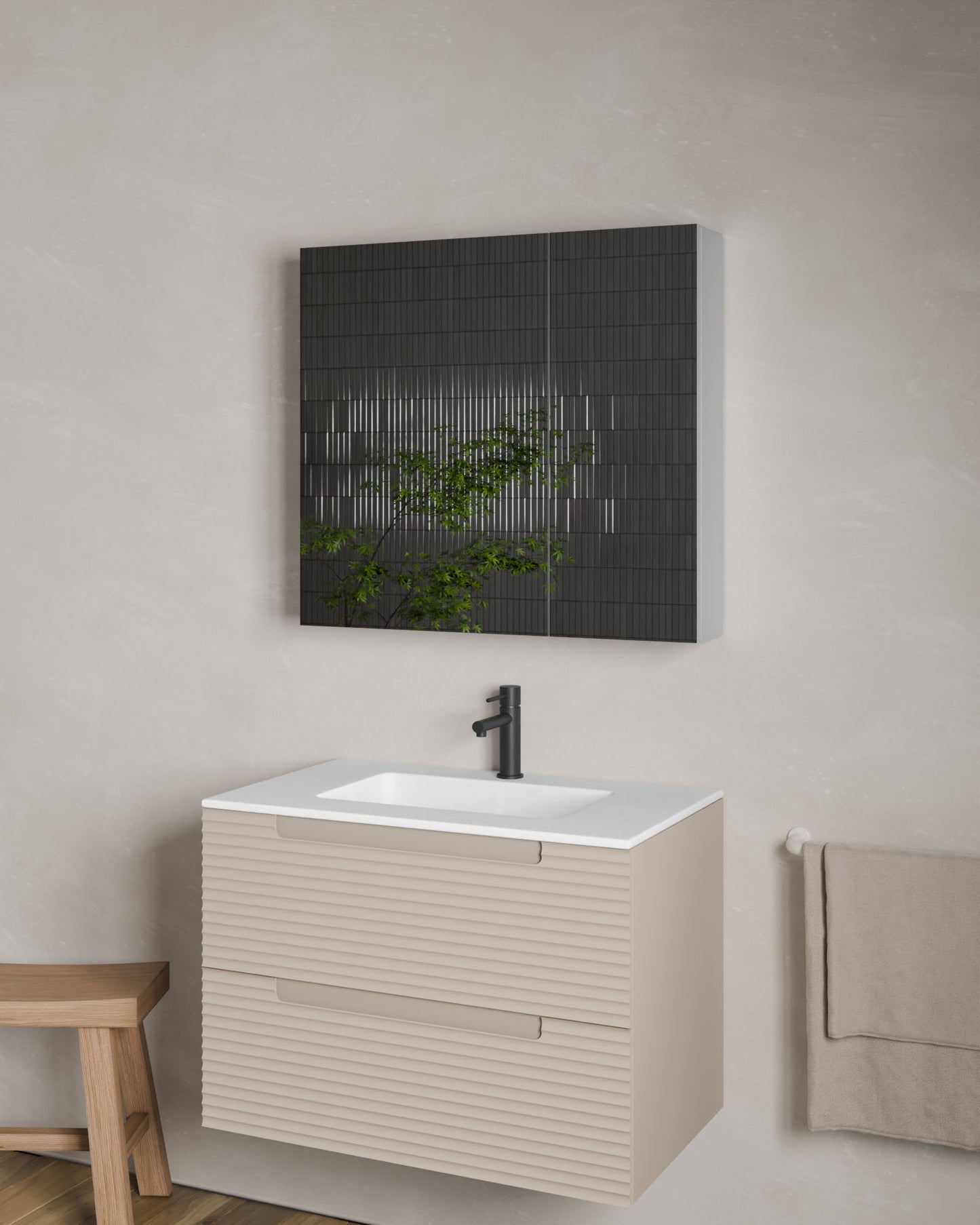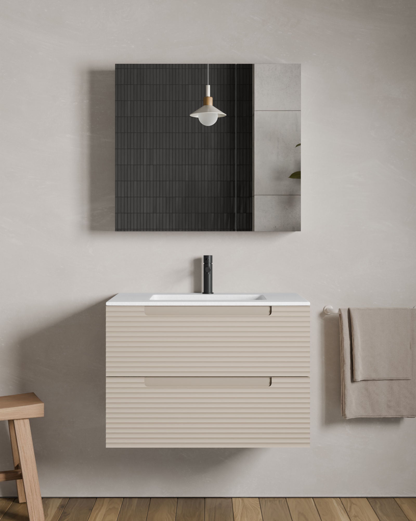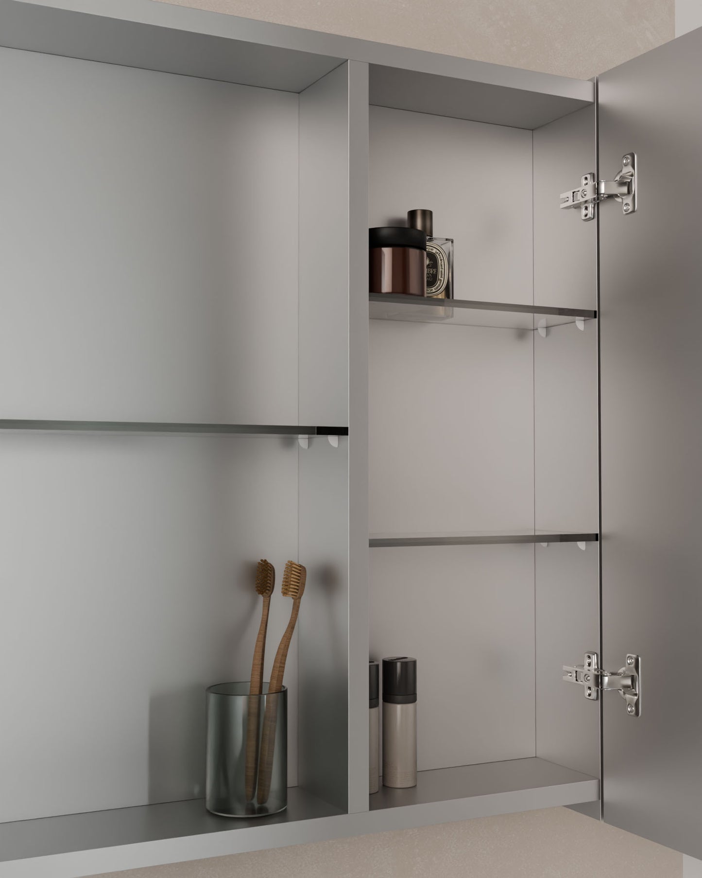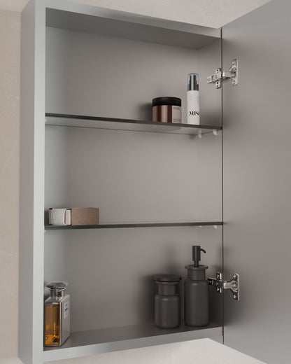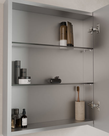 Der Spiegelschrank Lys vereint Alltagstauglichkeit und schlichtes Design in einem Möbelstück. Mit 1 oder 2 Türen passt er sich flexibel an verschiedene Räume und Bedürfnisse an.