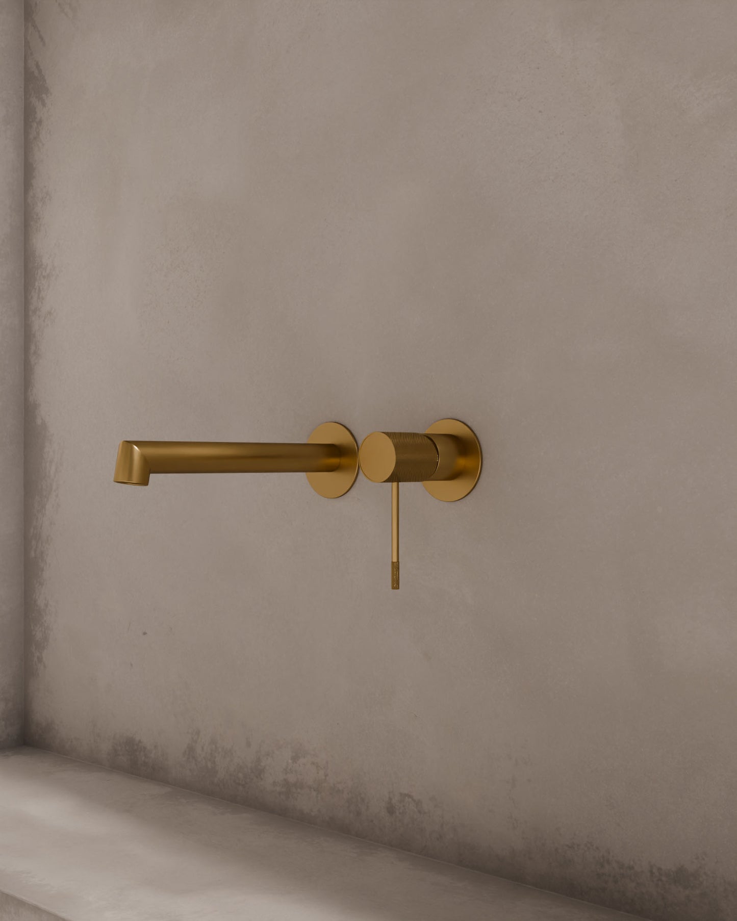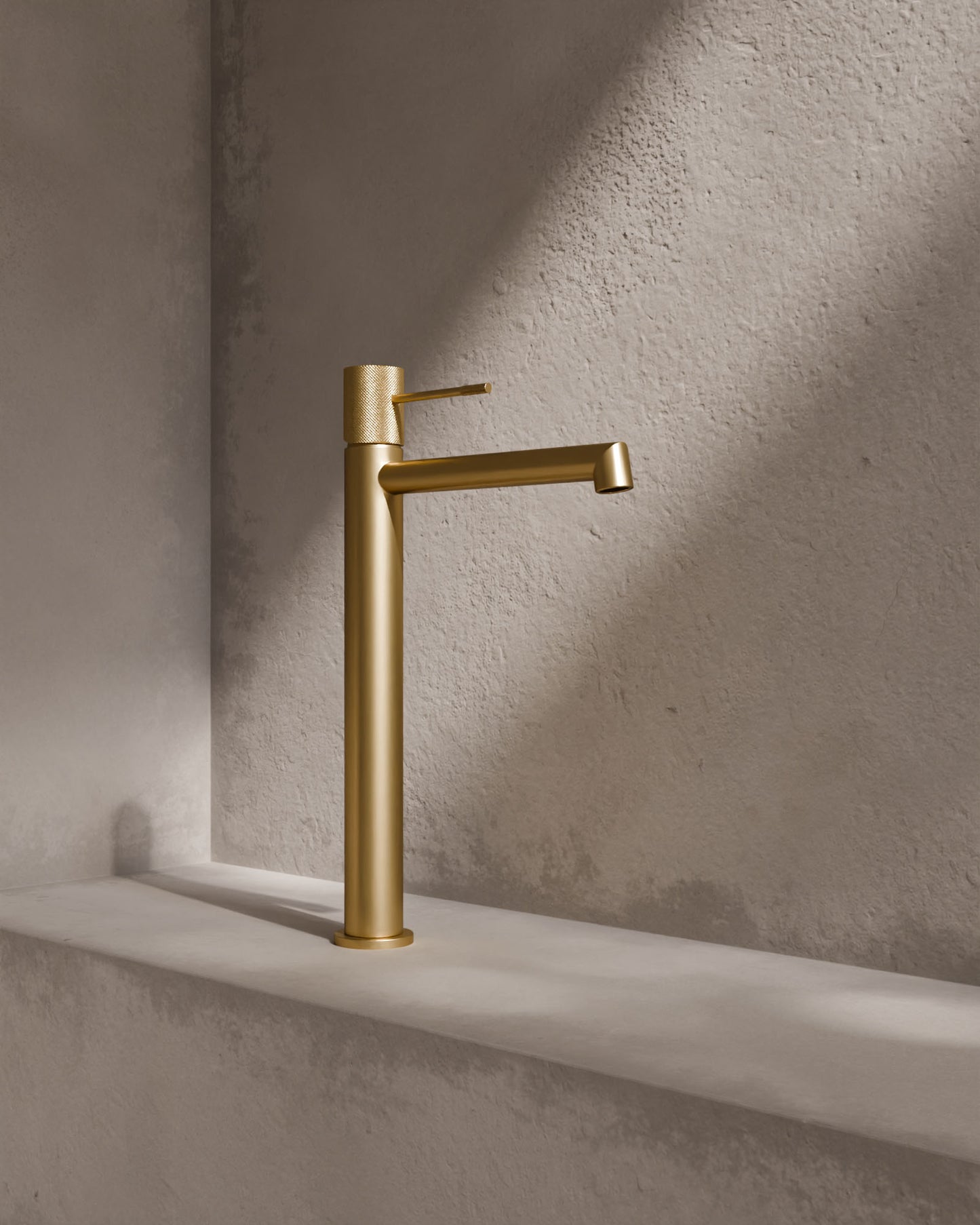 Die Serie Narel bringt italienisches Flair ins Bad: mit feinem Bedienhebel und markantem, gerilltem Auslauf.