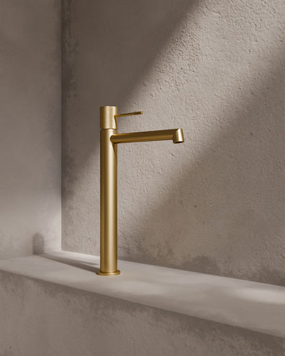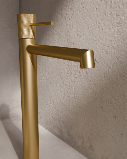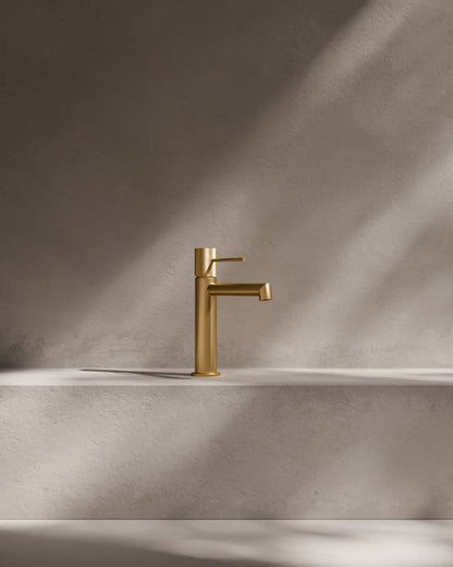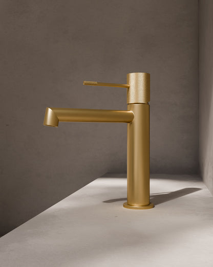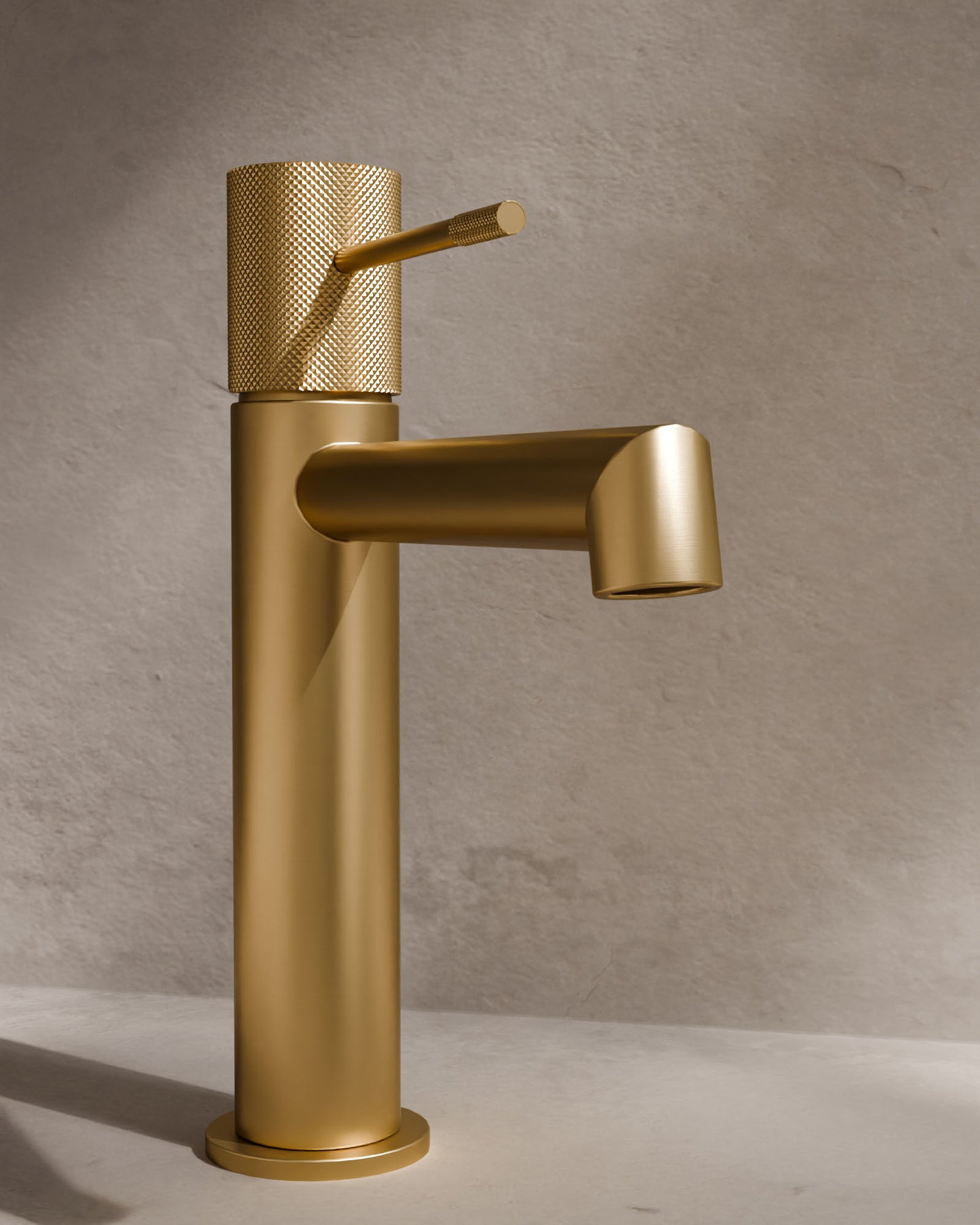 Einhebel-Waschtischarmatur im italienischen Stil mit feinem Bedienhebel und gerilltem Auslaufkopf. Elegant und vielseitig.