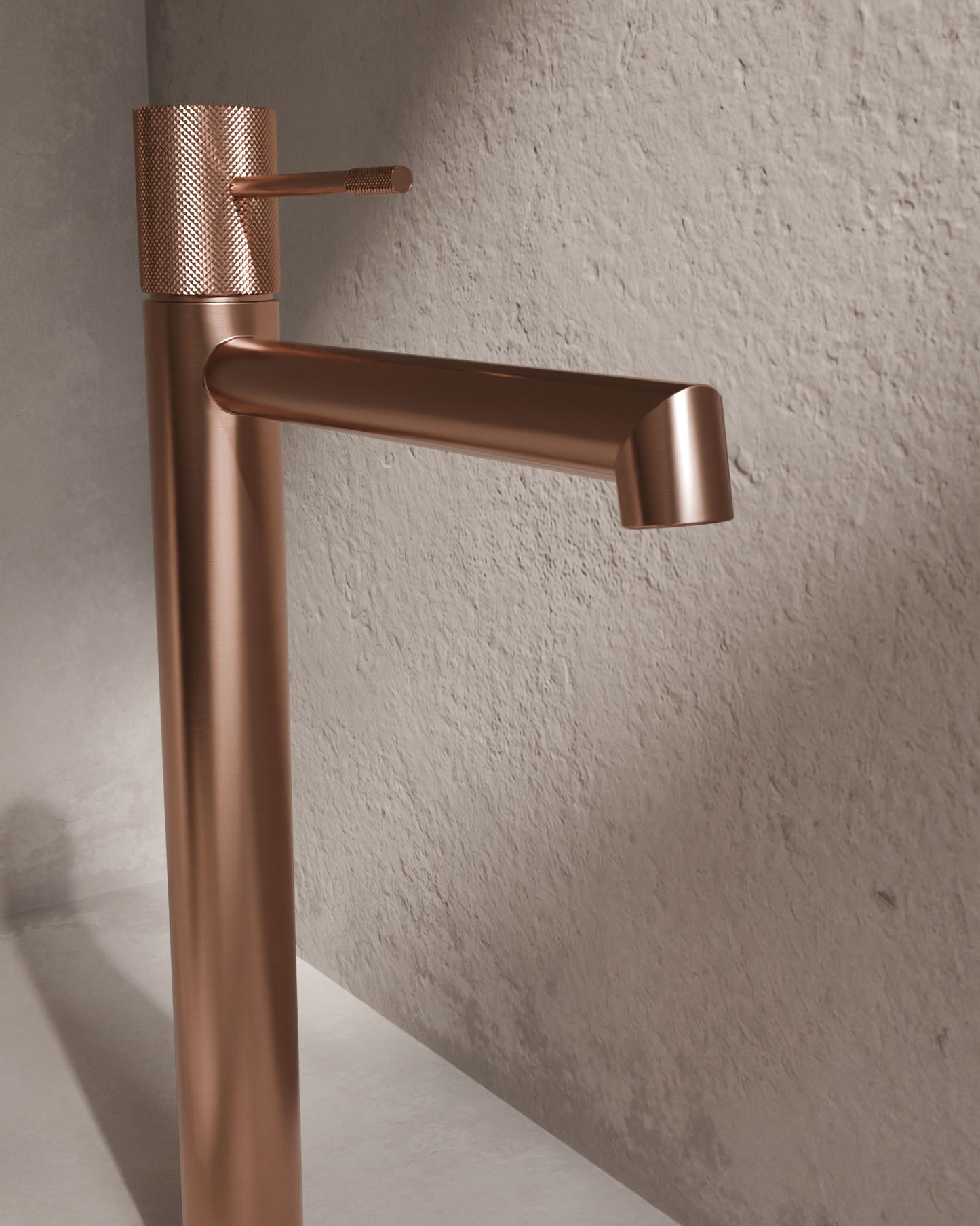 Einhebel-Waschtischarmatur im italienischen Stil mit feinem Bedienhebel und gerilltem Auslaufkopf. Elegant und vielseitig.