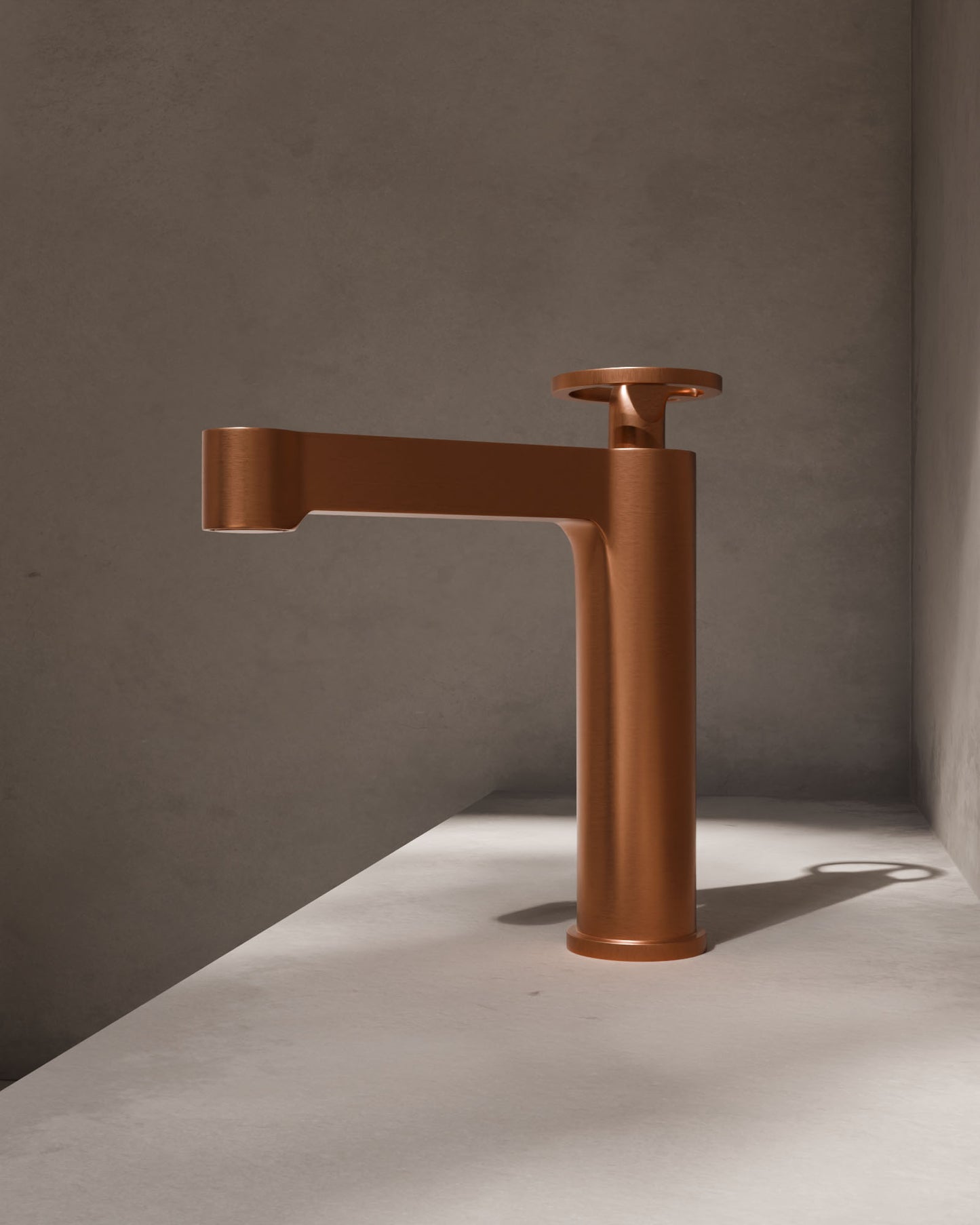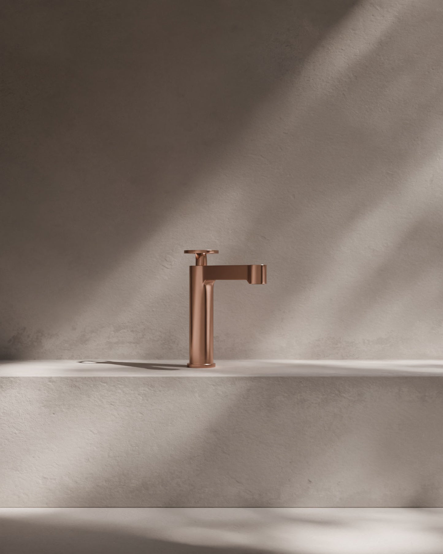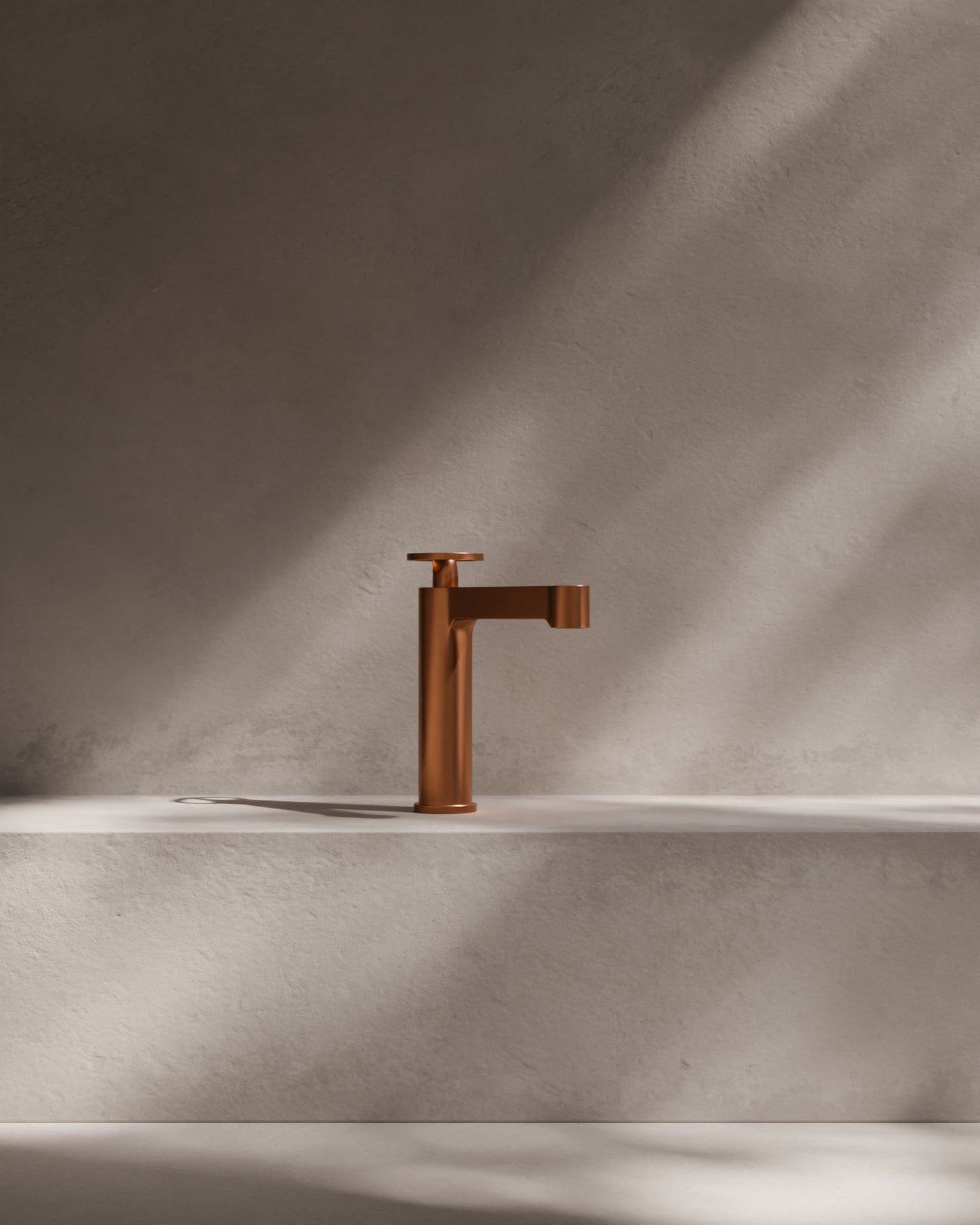 Einhebel-Waschtischarmatur mit klassischem Drehgriff – nostalgisch inspiriert und modern interpretiert.