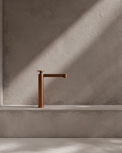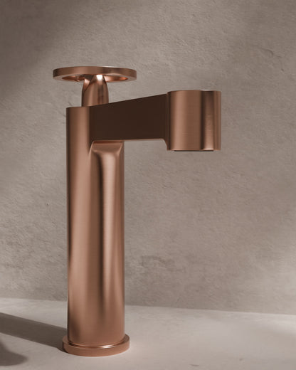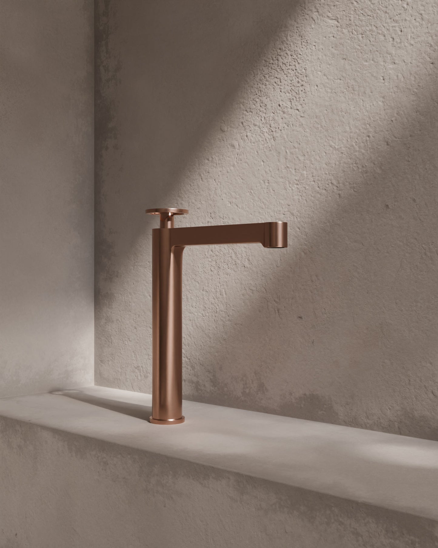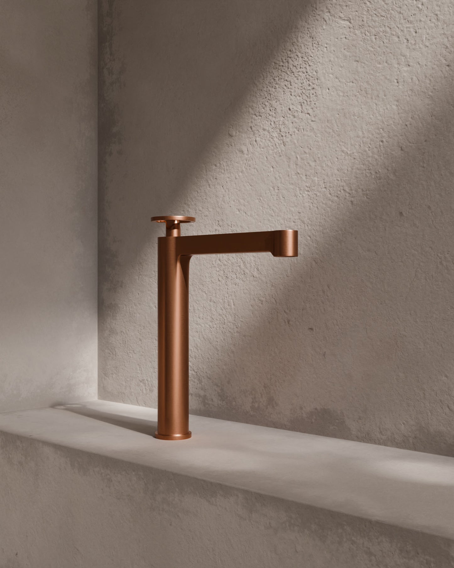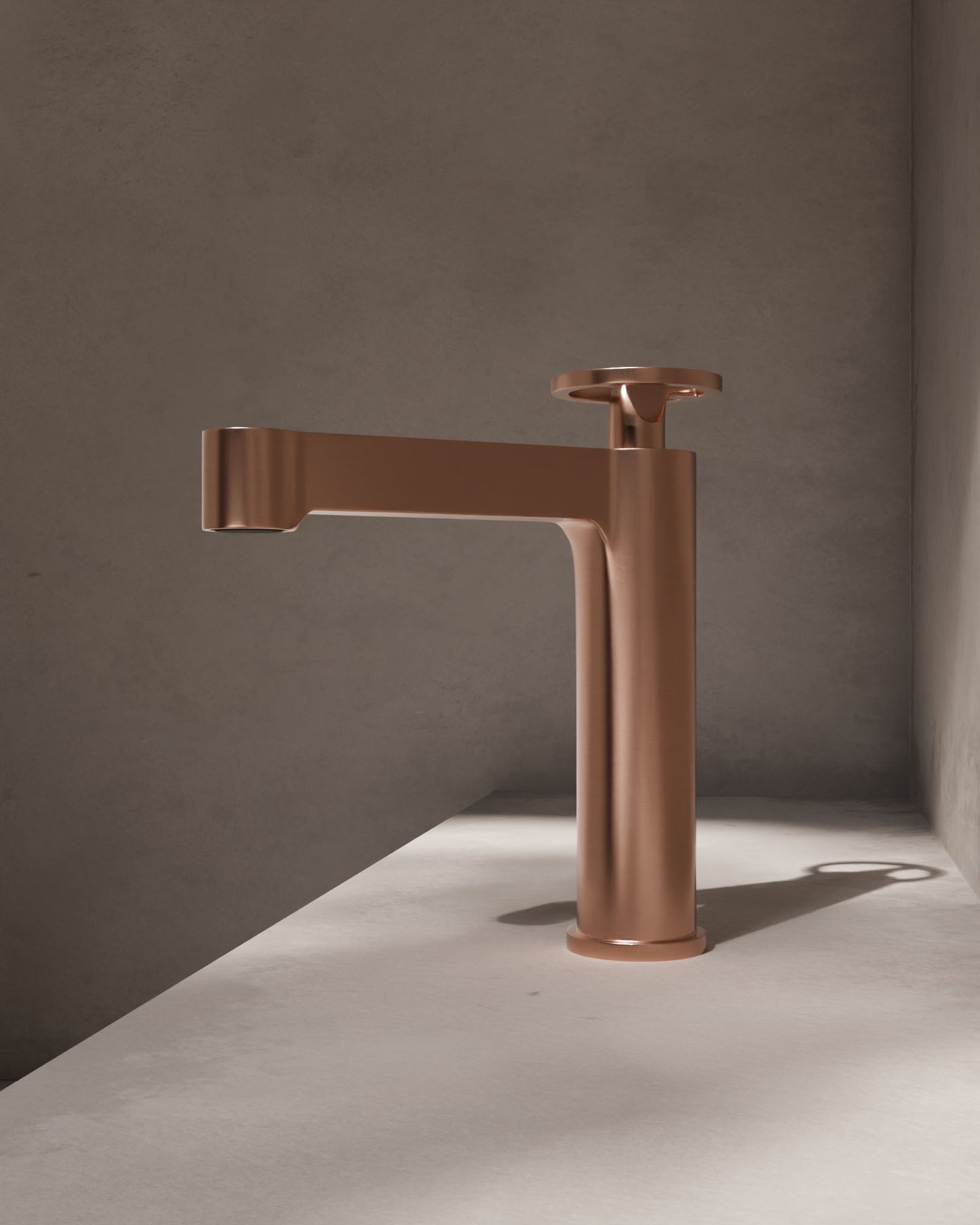 Einhebel-Waschtischarmatur mit klassischem Drehgriff – nostalgisch inspiriert und modern interpretiert.